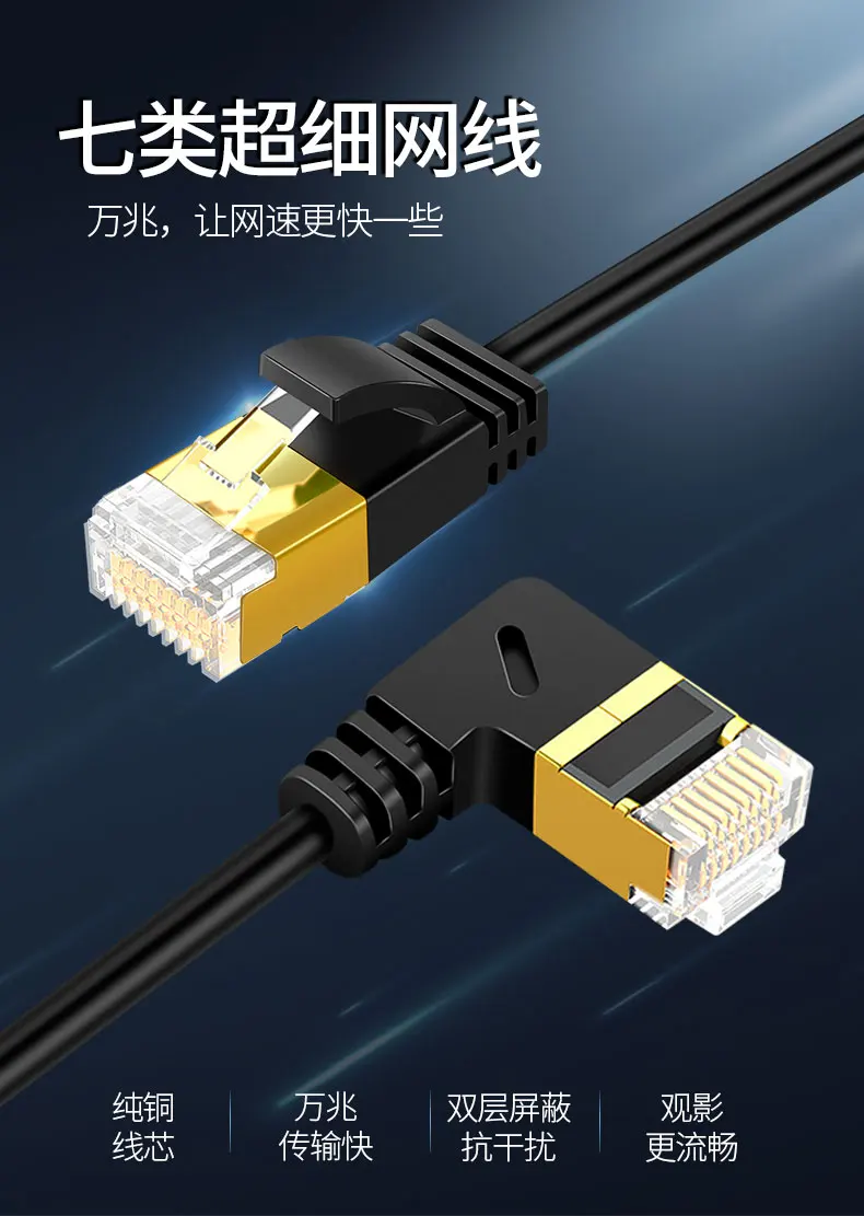 Comprar Cable ultrafino Ethernet de 10Gb RJ45 Cat7 6 Lan Cable de red UTP RJ45 para Cable de conexión Compatible con Cat6 ángulo recto de 90 grados
