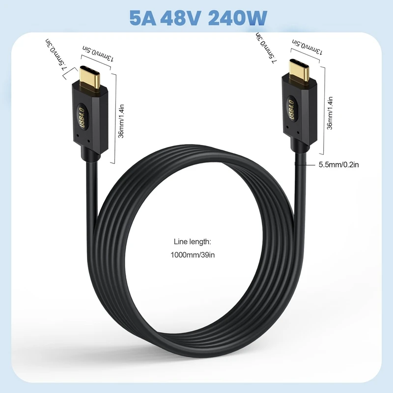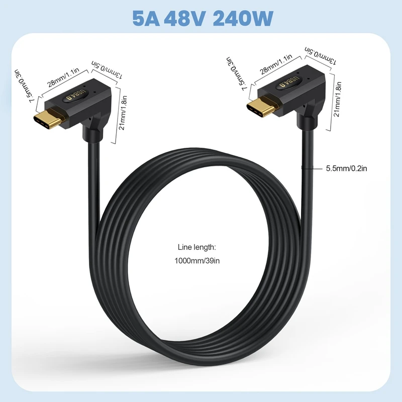 Compatible con una fuente de alimentación de hasta 240W (48V/5A), el cable de carga rápida USB tipo C de doble cabezal puede satisfacer plenamente las necesidades de carga rápida, Y puede cargar casi cualquier dispositivo, desde teléfonos móviles, accesorios hasta portátiles para juegos.