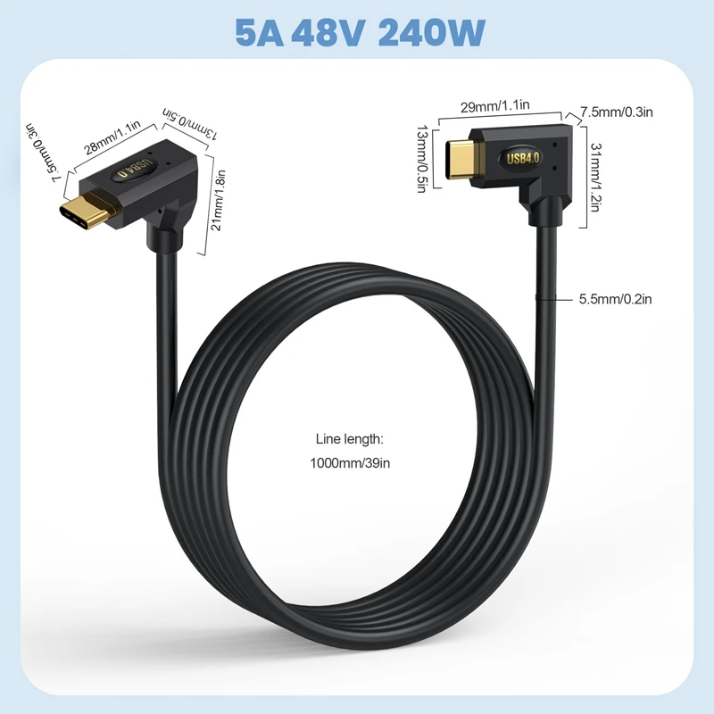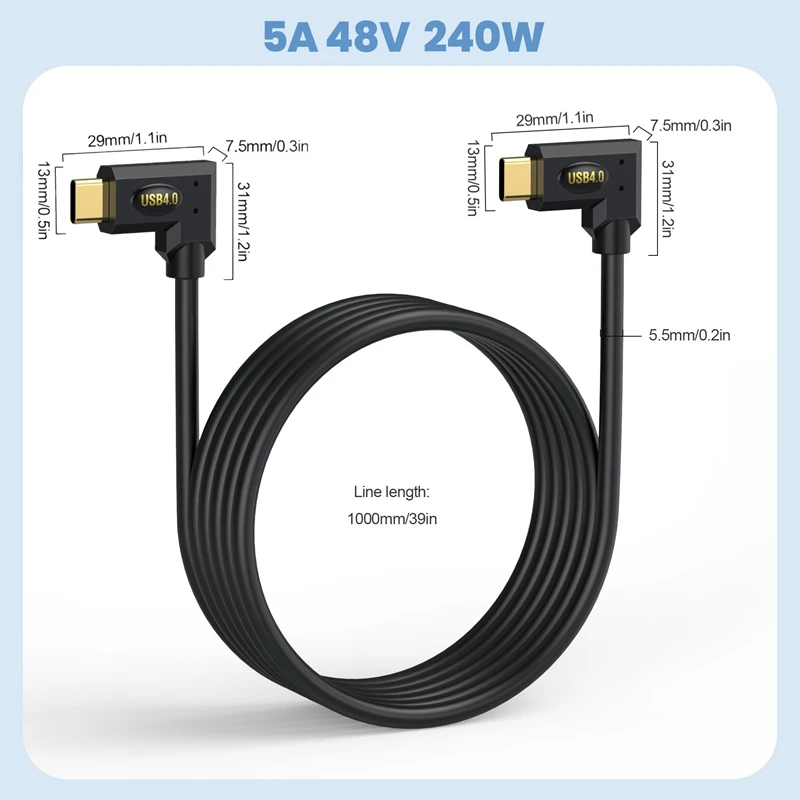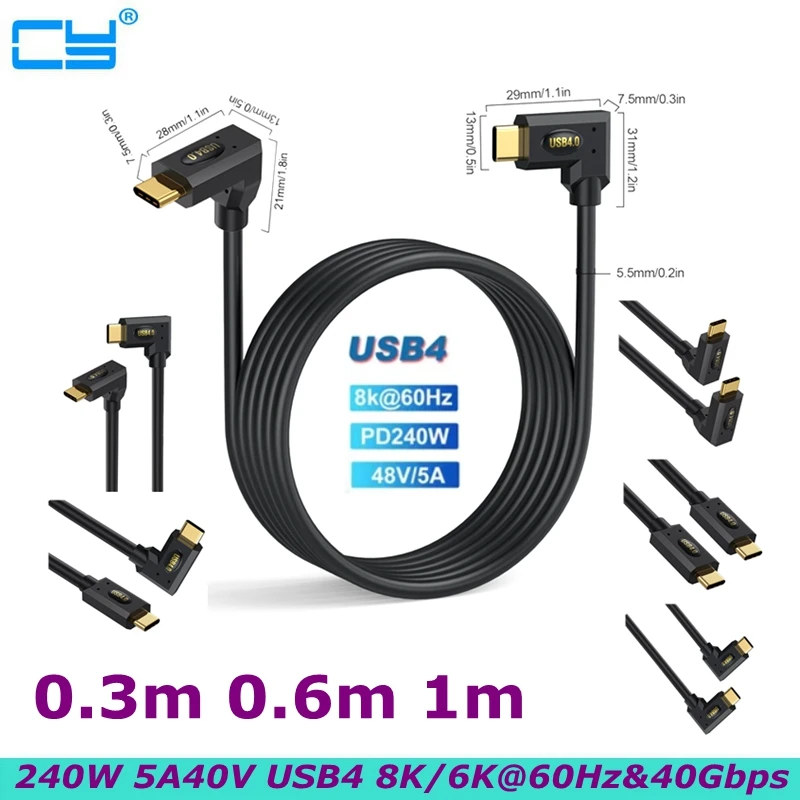 Comprar Cable USB 0,3 C a tipo C Thunderbolt 4,0, 4/3 m, 1m, 90 grados, compatible con 240W, 5A, 40V, 8K/6K, 60Hz y 40Gbps, Transfe de datos