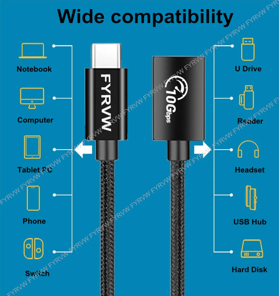 【Transferencia de datos súper rápida fyrvw 10Gbps supporting compatible con tasas de transferencia ultra altas de hasta 10Gbps, puedes transferir una película HD o más de 700 álbumes de música en menos de 7 segundos, ideal para discos duros externos de ordenador y transferencias de datos grandes.