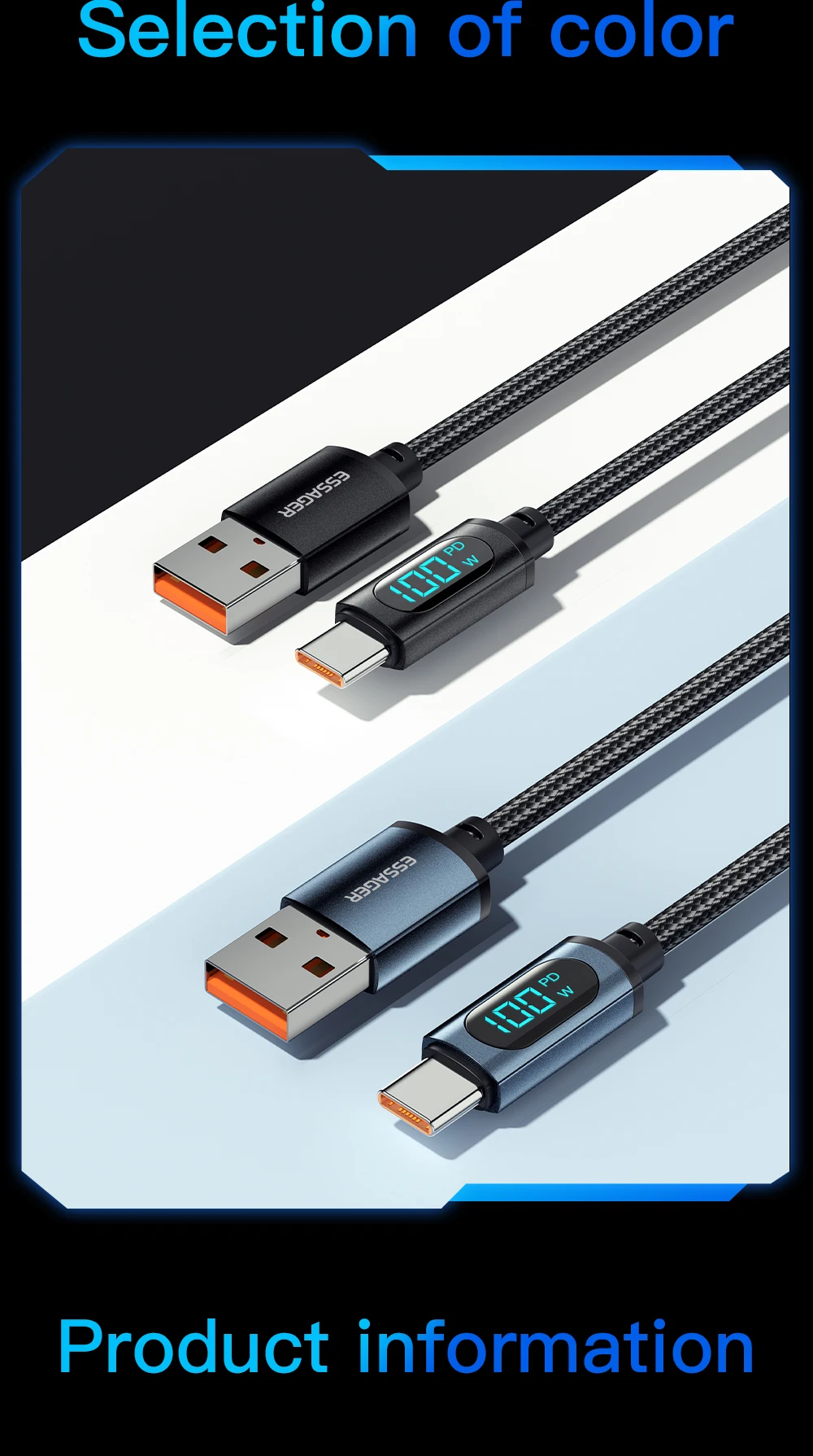 • Marca ESSAGER :Como producto de la marca ESSAGER, este cable USB tipo C garantiza una excelente relación calidad-precio, ofreciendo un rendimiento superior a otros cables de la misma categoría.