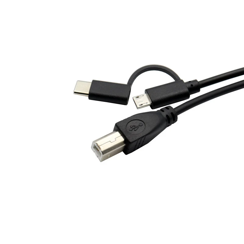 1M 1,5 M 2M USB 2,0 Micro + tipo C macho a USB 2,0 tipo-B macho OTG Cable para impresora de teléfono escáner electrónico Piano MIDI tambor tarjeta de sonido micrófono Micro