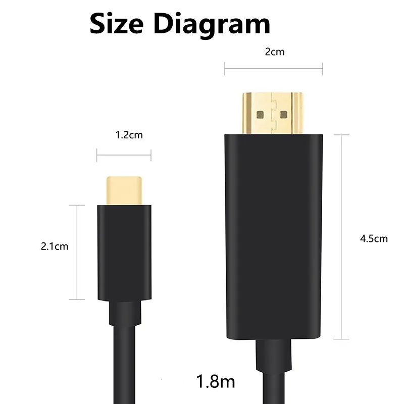 4K 1,8 metros USB C HDMI USB C USB 3,1 a HDMI Cable 1,8 M 4K x 2K USB 3,1 a HDMI convetrer 6 pies tipo C a HDMI Cable de video