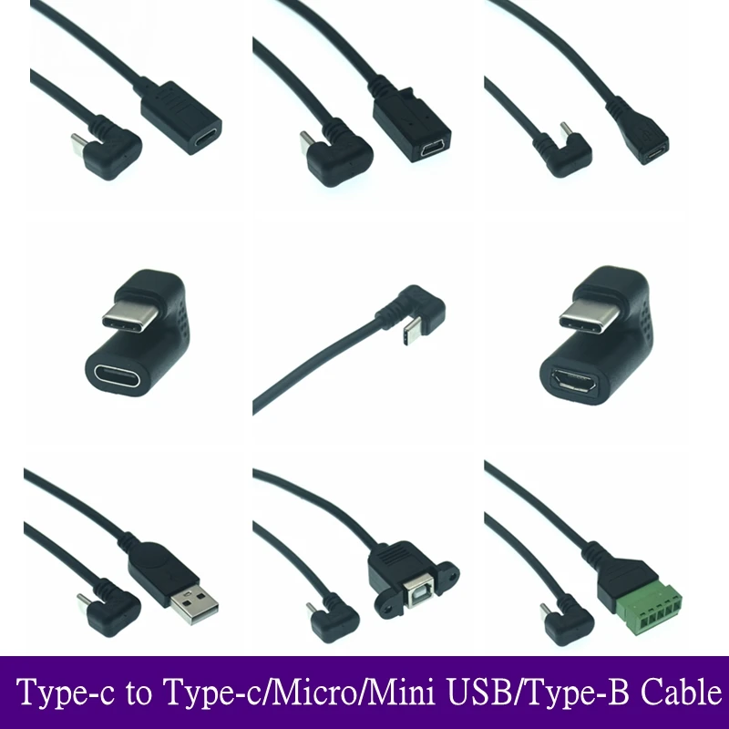 Comprar Cable USB 180 tipo C macho a Micro Mini tipo B hembra, convertidor de datos y carga, otg, USB-C, 3,1 grados hacia arriba y abajo, 25cm