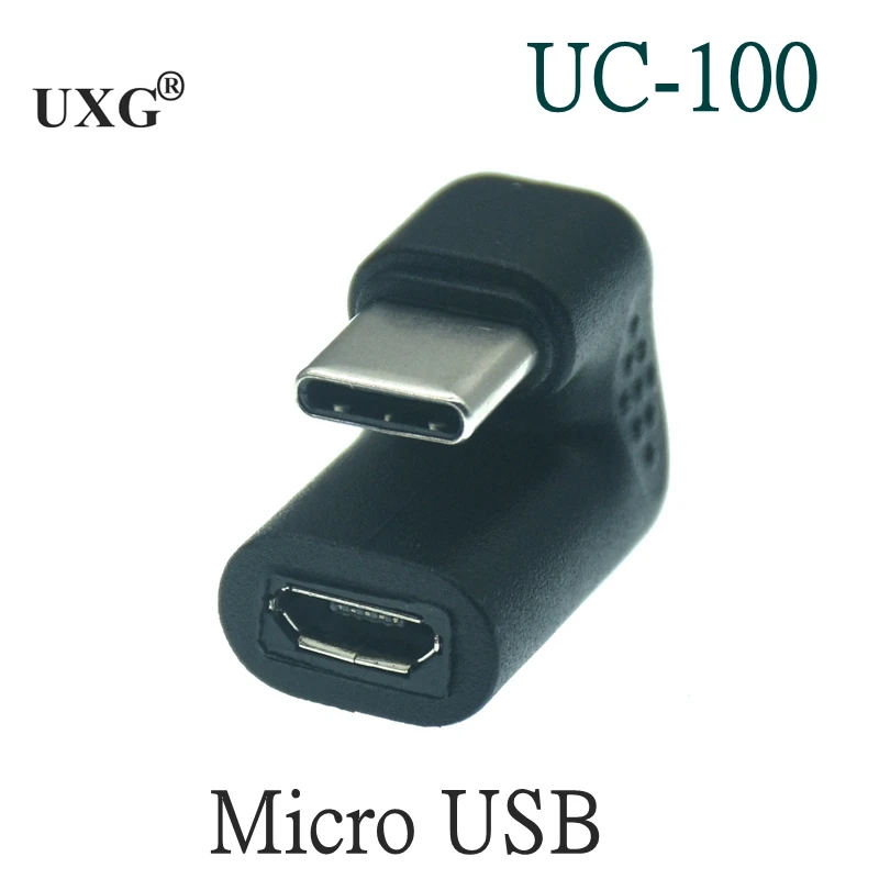 Adaptador USB C macho a micro USB hembra en ángulo recto, tipo C macho/hembra