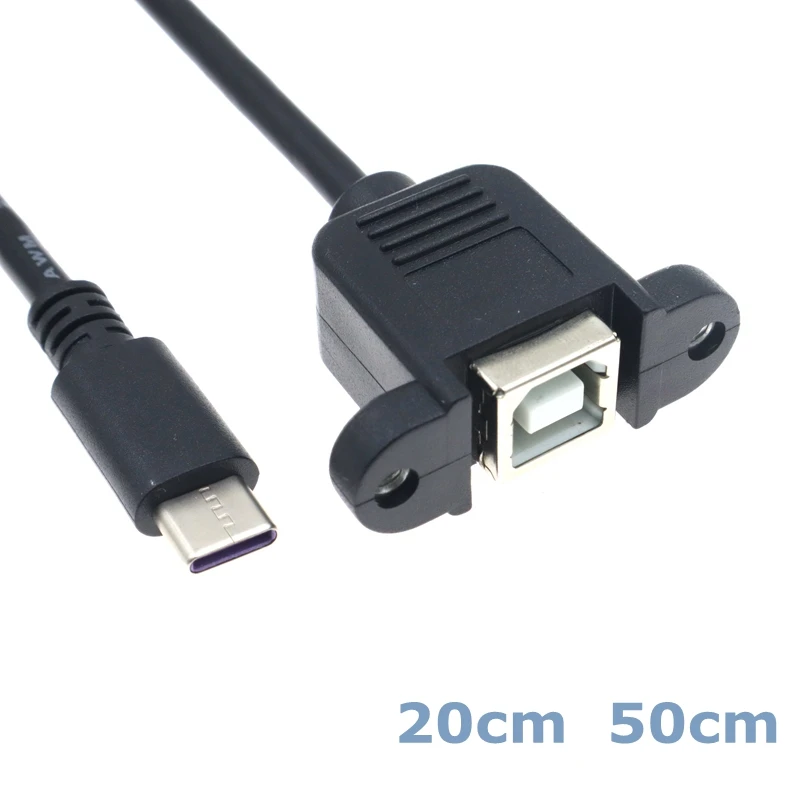 2: USB 3.1 Type C MaleUSB Type C Male to USB B Female Panel Mount Type Cable 50cm with ScrewsThe USB B type is Panel Mount Female connectorLength: 50cmColor: BlackUSB-C USB 3.1 Type-C Male to Standard USB 2.0 B Type Female Data Cable for Tablet & Cell PhoneThe Adapter cable can convert the Standard USB-B cable to New type C device.Type C connector is the new design for USB 3.1New smaller size: similar to size of USB 2.0 Micro-BReversible Design for Type C connectorReversible plug orientation & Cable directionSupport Scalable power chargingfor Tablet & Mobile Phone & Hard Disk DrivePayment: