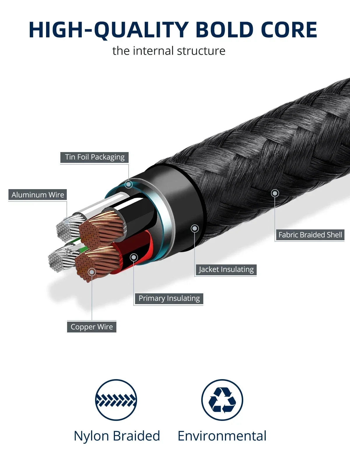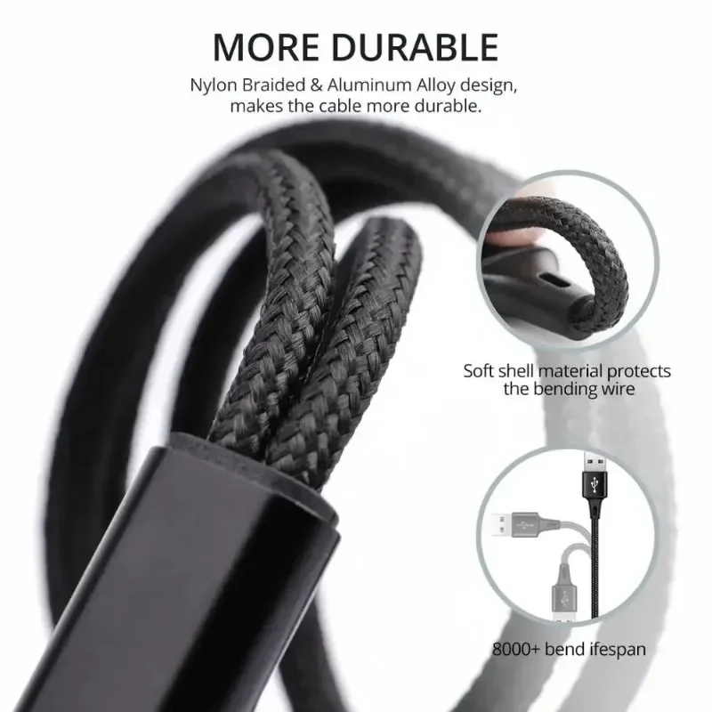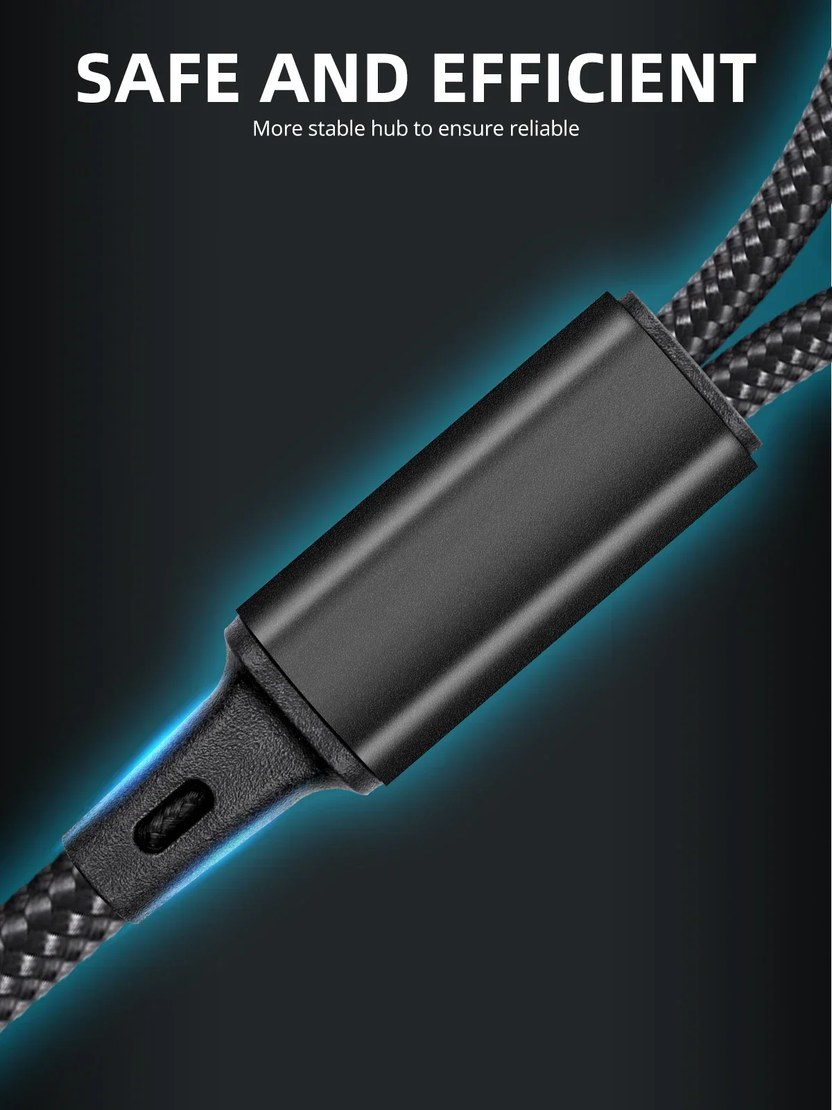 Comprar Cable USB 2 en 1 de nailon trenzado para móvil y Android, Cable de carga rápida 2 en 1 Tipo C para tableta y teléfono, 1 piezas
