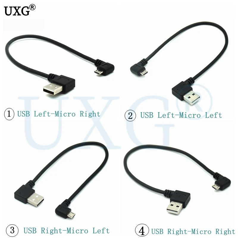 Comprar Cable USB 2,0 A macho A Micro USB B macho, ángulo derecho y izquierdo, extensor de carga y sincronización de datos, 25CM, corto, 90 grados