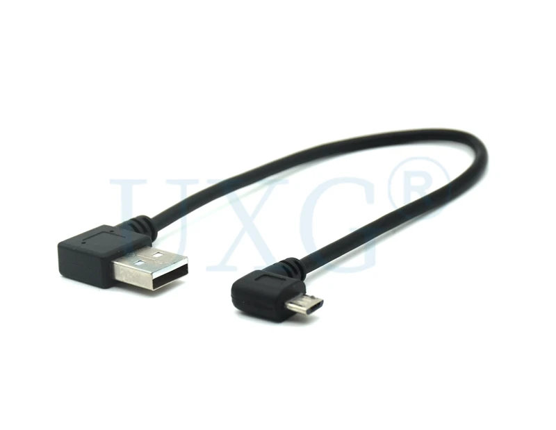 Comprar Cable USB 2,0 A macho A Micro USB B macho, Cable corto de 90 grados, ángulo derecho e izquierdo, sincronización de datos de carga y extensor, 25CM