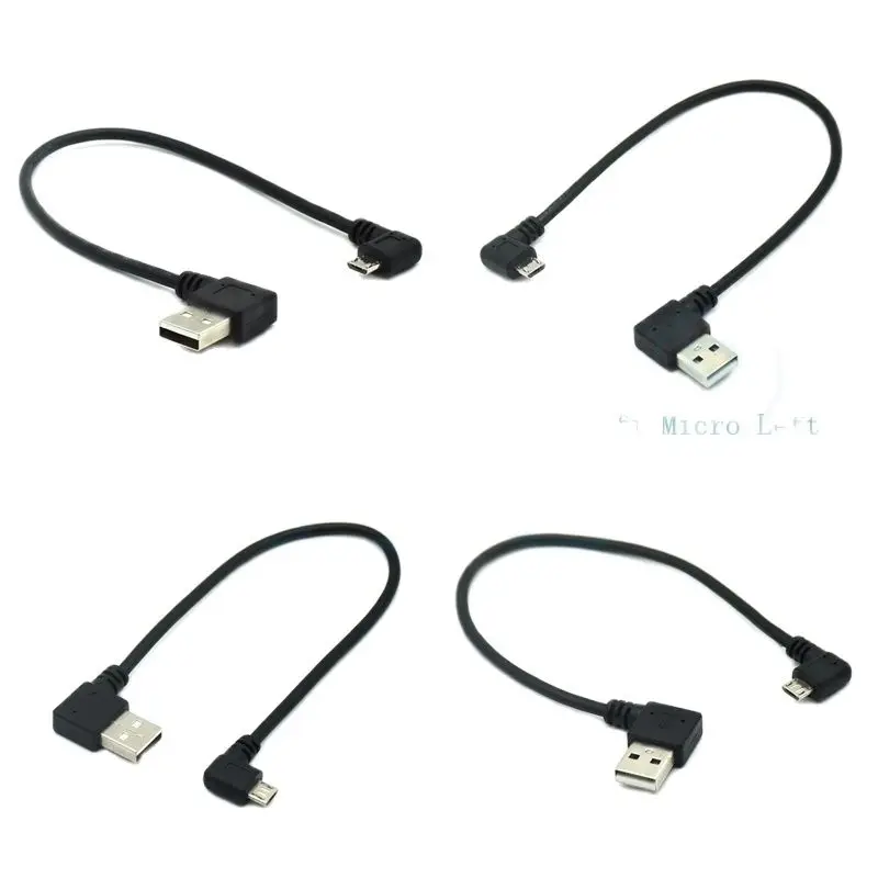 Cable Micro USB Combo Ángulo izquierdo y derecho Micro USB 5 pines macho a USB 2,0 Tipo A Ángulo recto Macho Sincronización de datos y cable de carga
