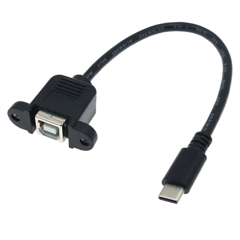 Comprar Cable USB 2,0 B hembra a tipo C 3,1 macho de 50cm para escáner, impresora, instalación de Panel de caja de computadora con conector de orificio de tornillo