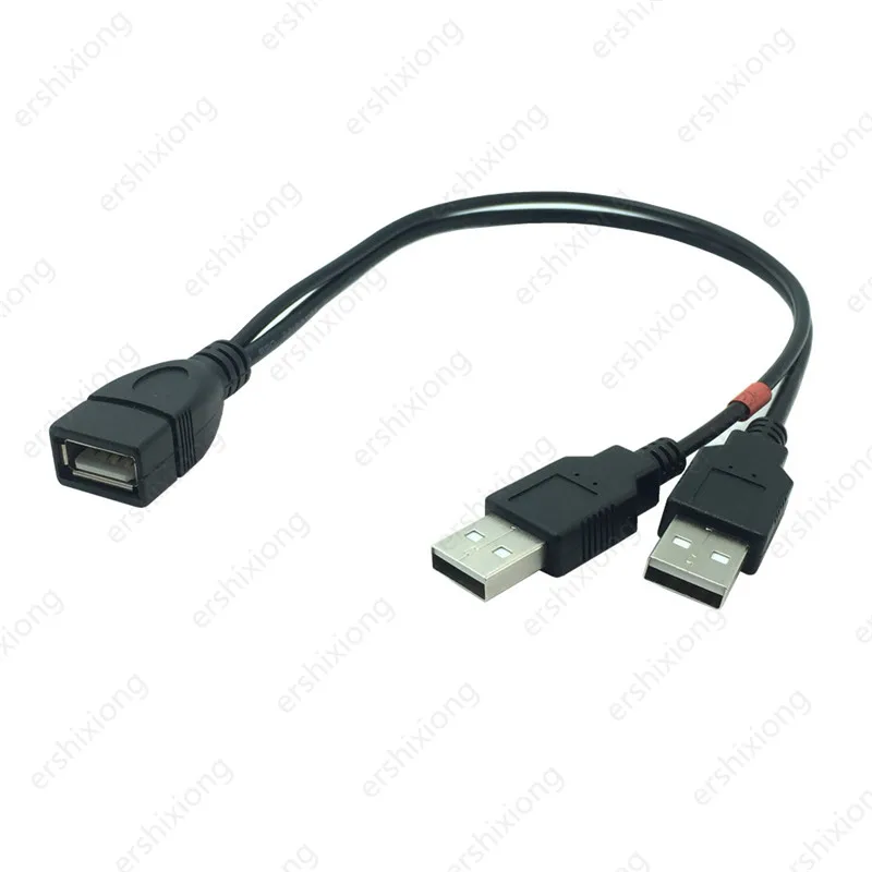 Especificación:Color negroLongitud del cable: 36 cmTipo: USB 2.0-A macho a doble USB hembra, cable de extensiónAplicar para:1. Doble fuente de alimentación, fuente de alimentación auxiliar y refuerzo.2.Se puede utilizar para conectar discos duros, tarjetas de red inalámbricas, cámaras, impresoras y otros equipos.3. Esta extensión puede tener hasta 1000 mA de corriente, pueden aceptar todos los cartuchos de disco duro, incluidos los discos duros de estado sólido SSD en el mercado.El paquete incluye:1 cable USB.NOTA:Un cable es solo para cargar, ¡no se puede transferir datos!Una línea es solo para cargo, la otra es para transferir datos.