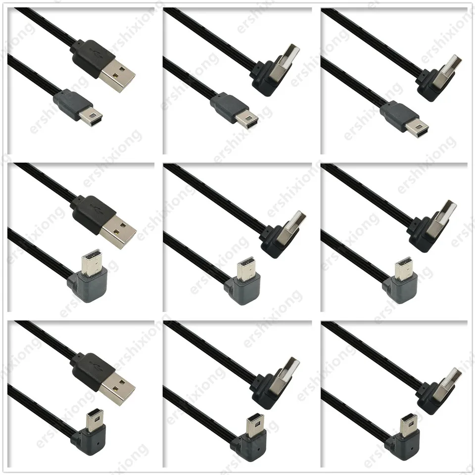 Comprar Cable USB 2,0 macho a Mini USB de ángulo recto hacia arriba y abajo, Cable de 90 grados de 0,1 m, 0,2 m, 0,3 m, 0,5 m para cámara, MP3, MP4, reproductor de tableta, DVR, GPS para coche