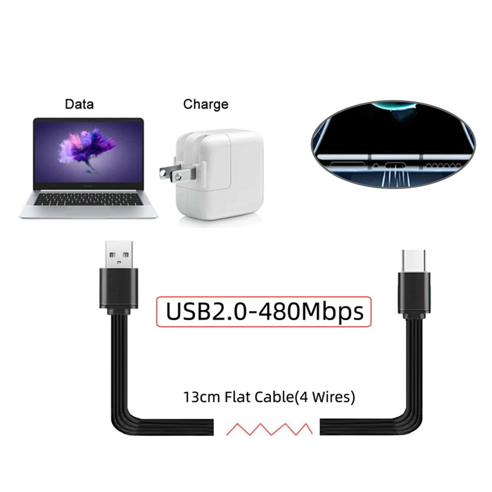 Cable FPC Delgado plano de datos de 90 grados en ángulo izquierdo y derecho de 13cm USB 2,0 tipo A macho a tipo C para FPV, disco y teléfono