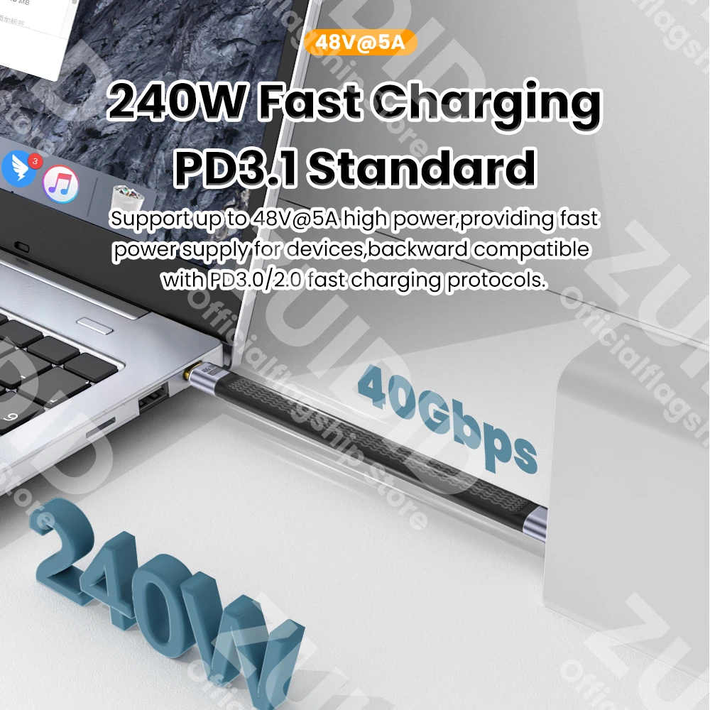 Comprar Cable USB 240 Gen3 FPC de carga rápida, Cable Tipo C a Tipo C, Thunderbolt 3, 8K, 60Hz, PD, 4,0 W, 5A, 40gbps