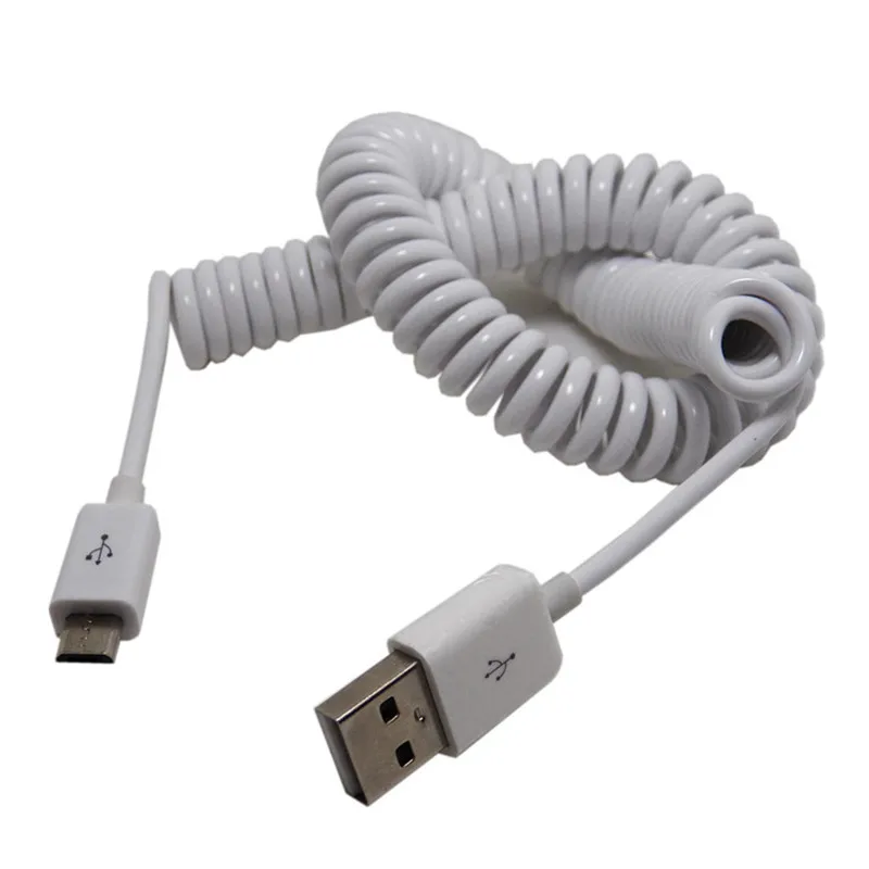 Comprar Cable USB 2,5 en espiral, conector macho a Micro USB de 5 pines, cargador de sincronización de datos, Cable elástico para teléfonos Samsung, HTC y LG, 2,0 m
