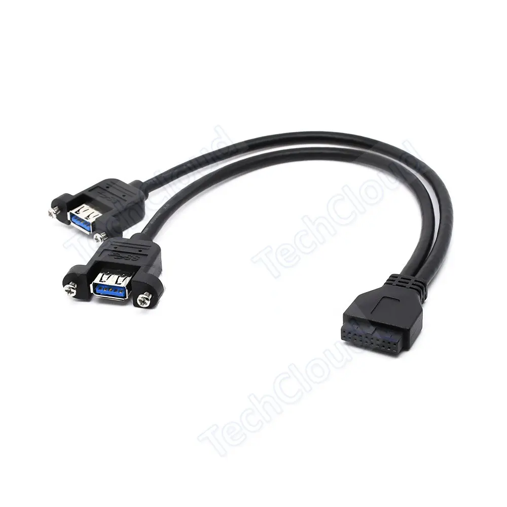 USB 3.0 Doble dos puertos hembra Tipo de montaje de tornillo a placa base Cable de cabecera de 20 pines