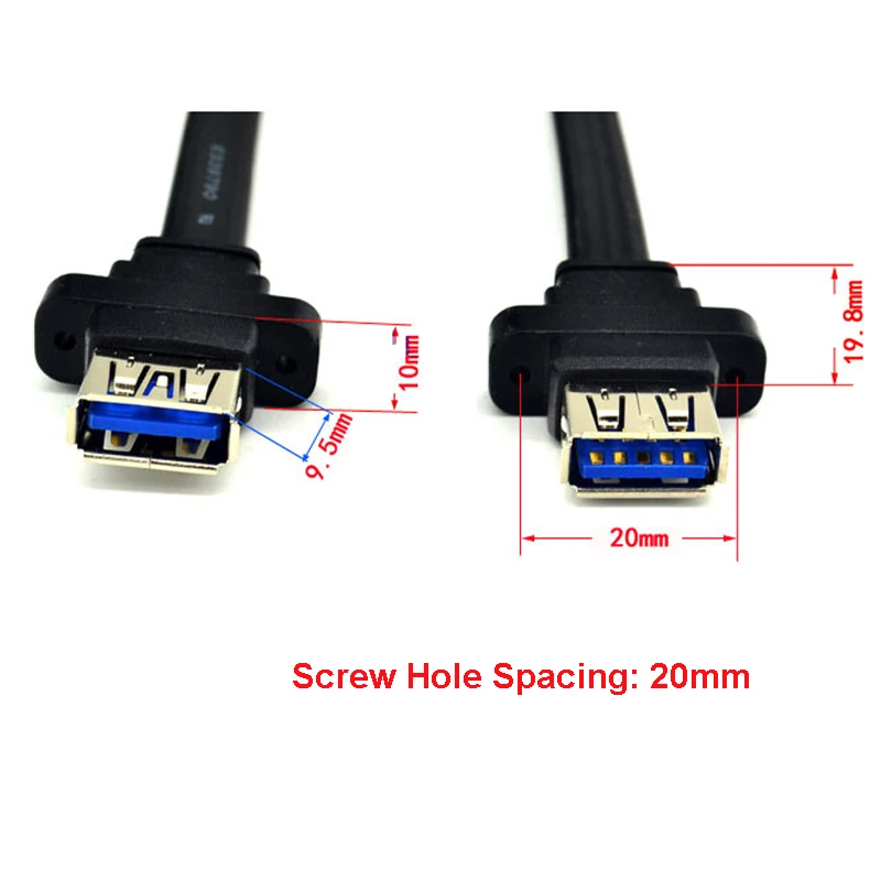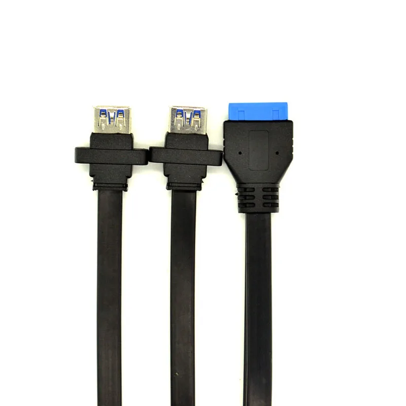 Cable USB 3,0 HUB USB 2x USB 3,0 macho a hembra 19Pin Header USB3.0 Cable de extensión con montaje en Panel de tornillo para computadora de escritorio