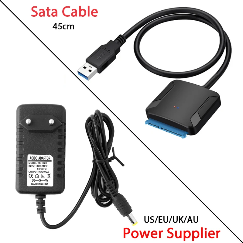 Paquete incluido: Sin adaptador de corriente: 1 adaptador convertidor USB 3.0 a SATA. O con enchufe: 1 X enchufe (espero que puedas comprobar claramente la versión) + 1 adaptador convertidor USB 3.0 a SATA. O solo enchufe: 1 X enchufe (espero que puedas comprobar claramente la versión)