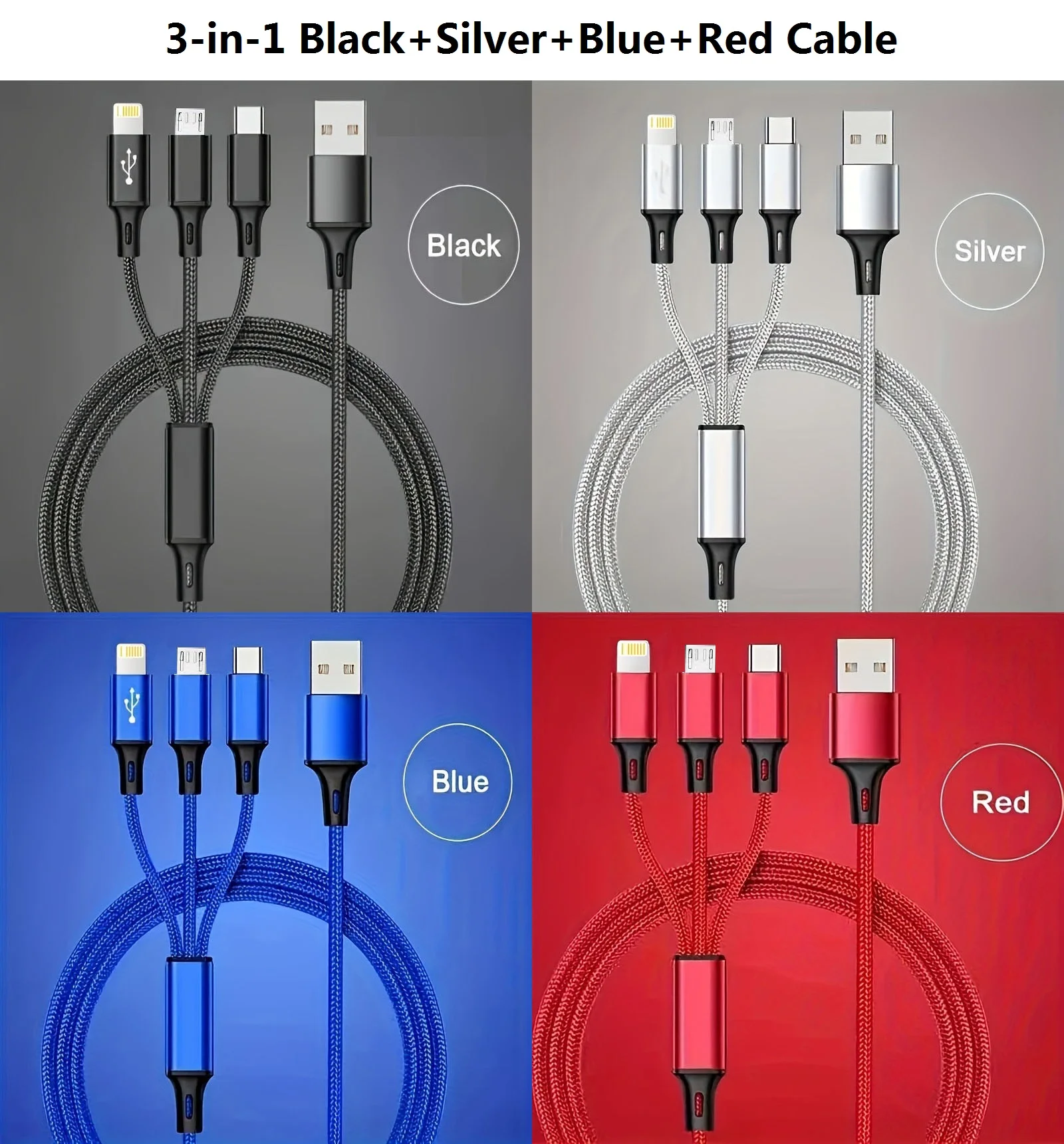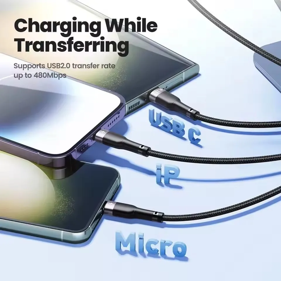 Comprar Cable USB 3 en 1 tipo C Micro cargador para iPhone 14 13 12 8 7 SE Pro Samsung A51 A71 A70 A81 M31 Xiaomi Poco Huawei Android
