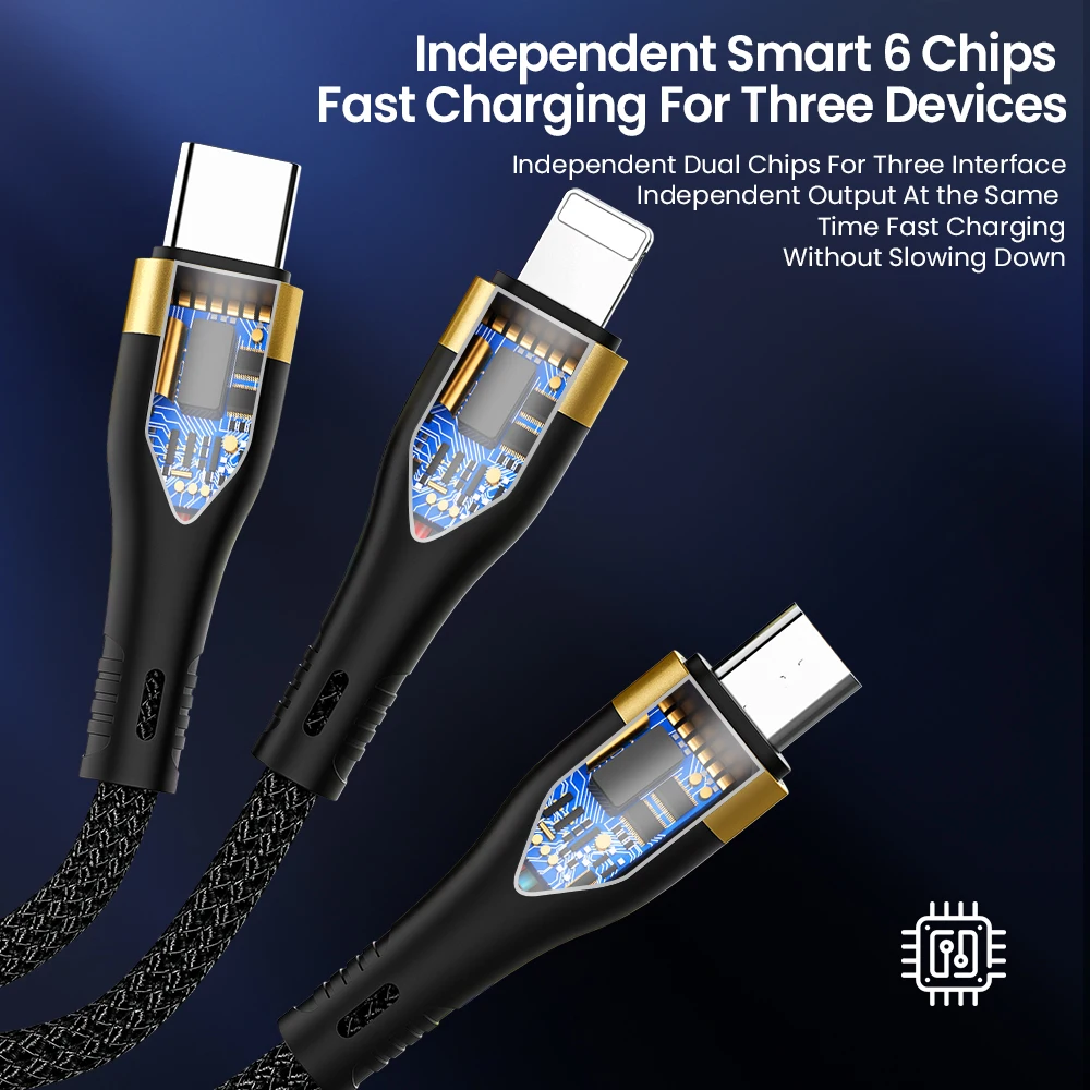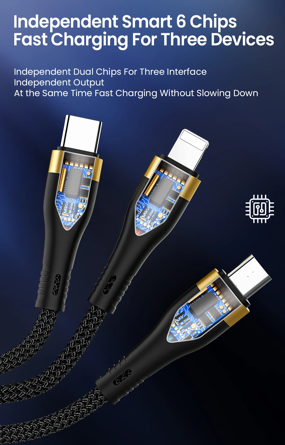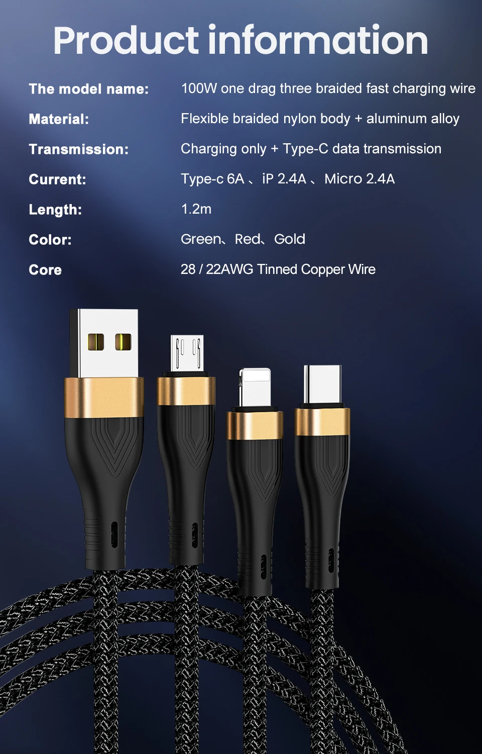 Comprar Cable USB 3 en 1 de carga rápida para móvil, Cable Micro USB tipo C para iPhone 14, 13, 12 Pro, Samsung, Xiaomi, Huawei, P40, 100W