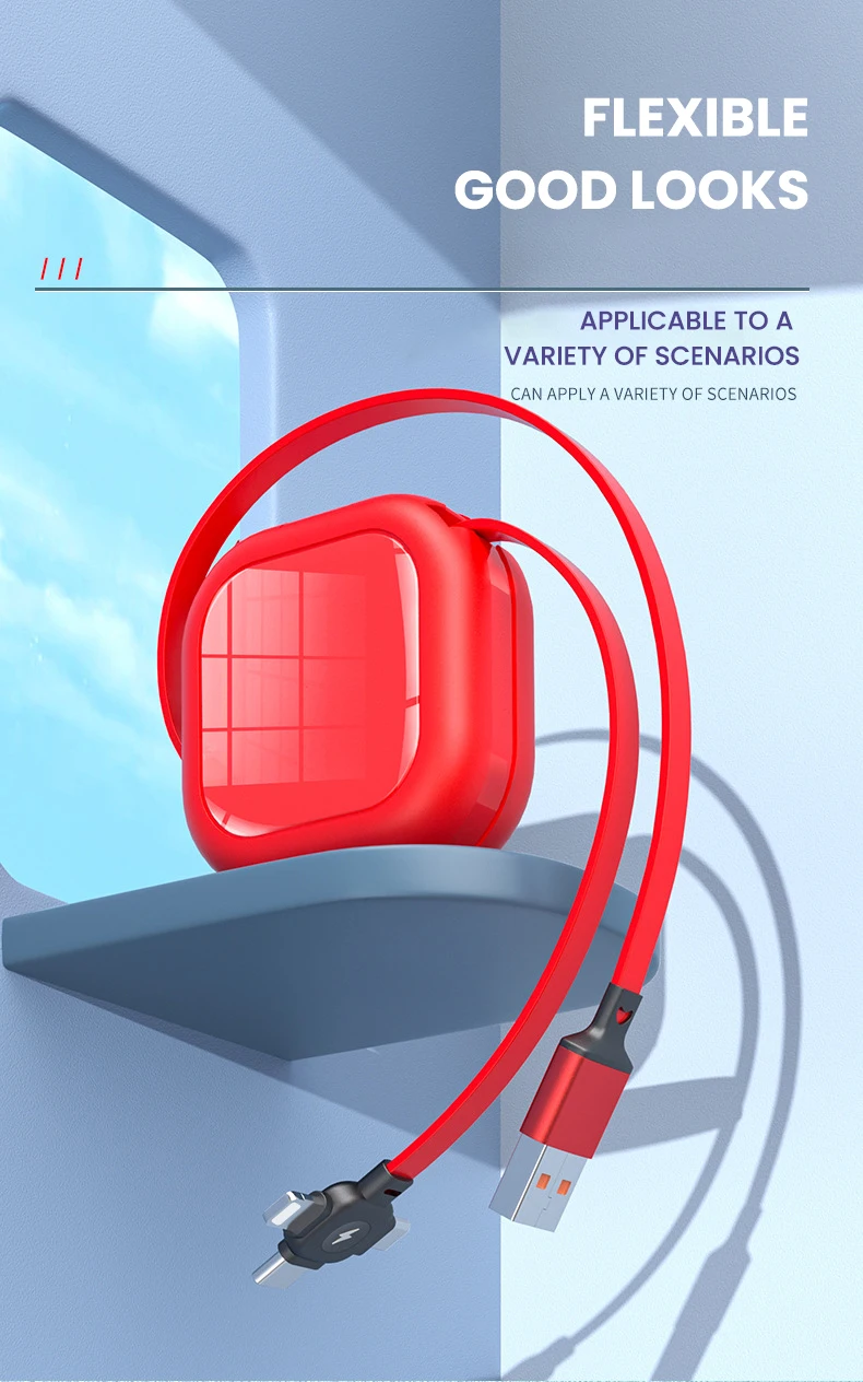 Comprar Cable USB 3 en 1 para iPhone 13, 12 Pro Max, Micro USB tipo C, 2.4A retráctil de Cable de carga, 3 en 1, para Samsung y Huawei
