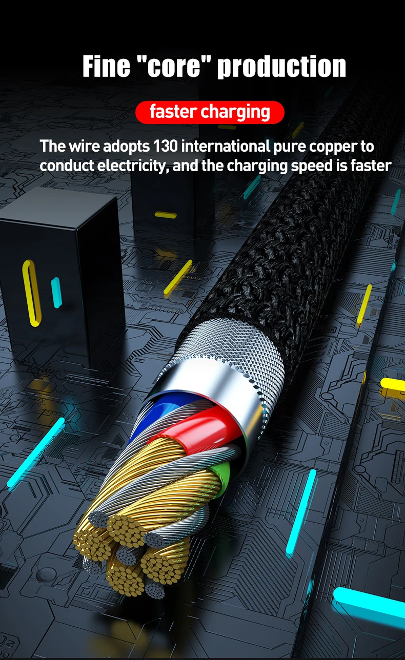 【Highlights】: diseño uno por tres, resistente al estiramiento, antibobinado, derivación inteligente, inyección y dispensación en molde, logrando una carga rápida síncrona de tres cabezales.