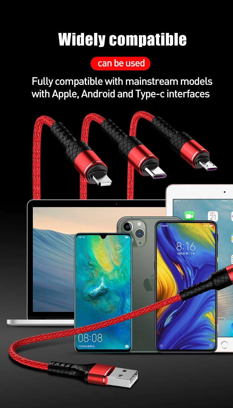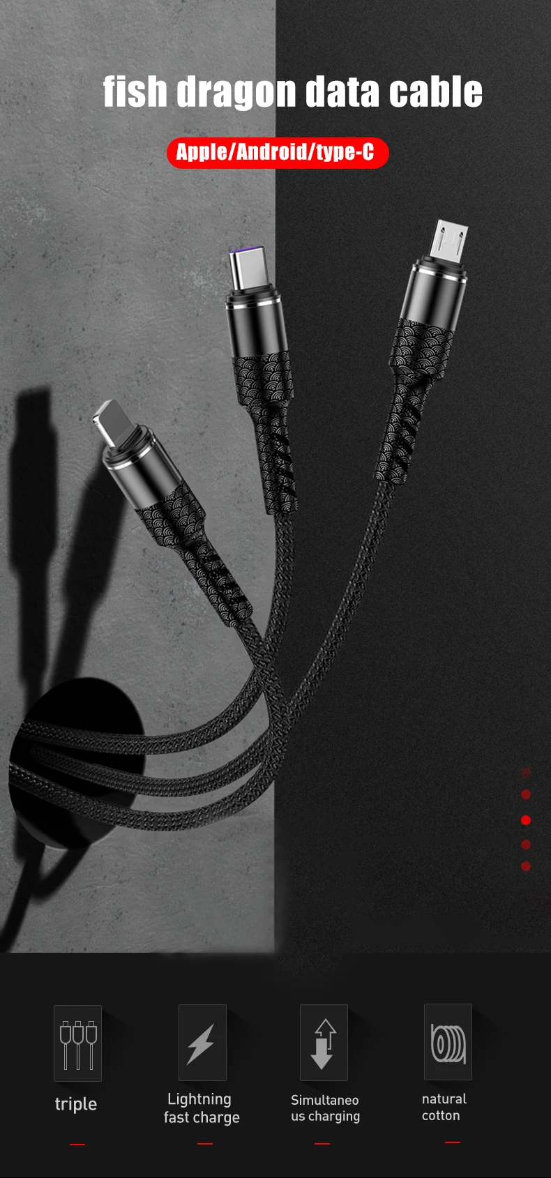 Cable USB 3 en 1 Cable tipo C para Samsung S20 Xiaomi Huawei 4 en 1 Cable de carga rápida para iPhone 13 12 11 Cable Micro USB cargador