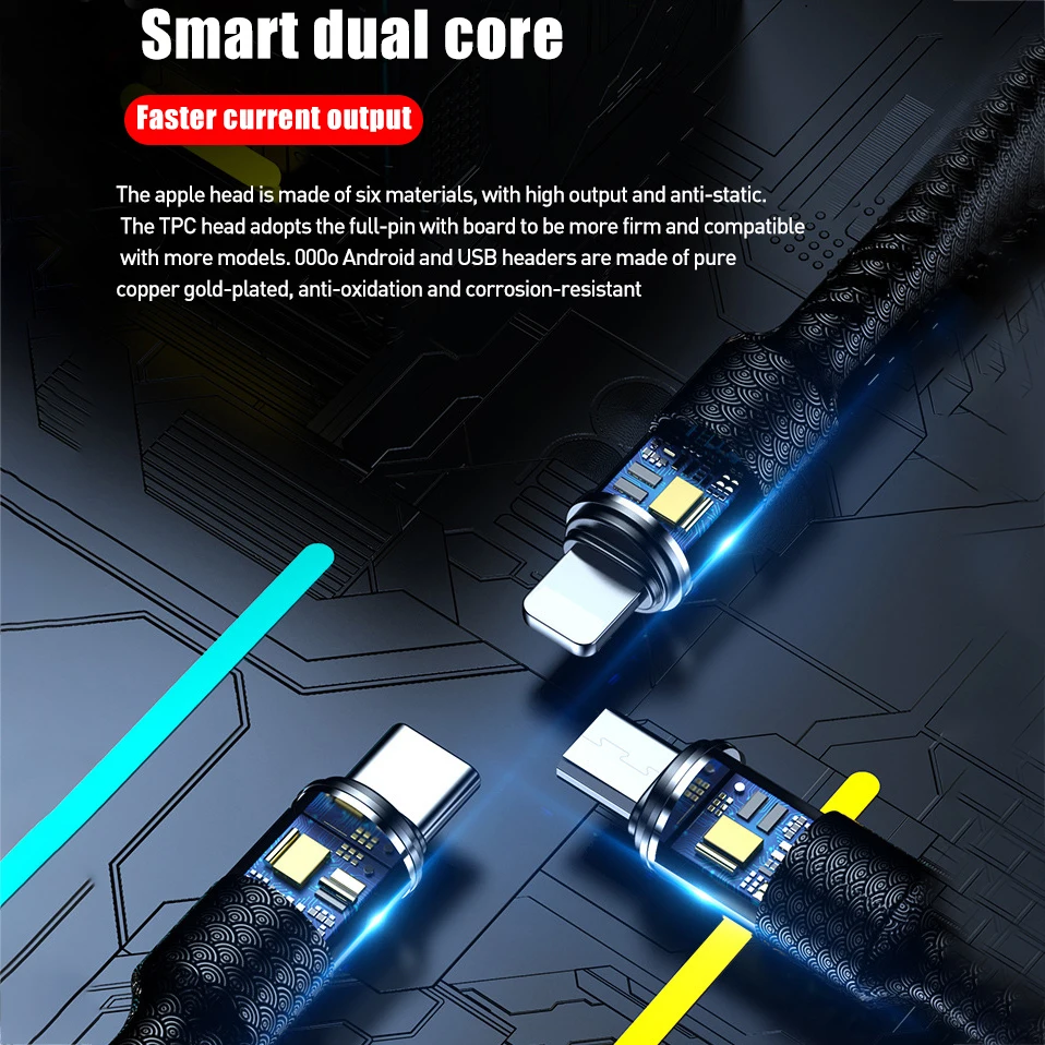 【Highlights】: diseño uno por tres, resistente al estiramiento, antibobinado, derivación inteligente, inyección y dispensación en molde, logrando una carga rápida síncrona de tres cabezales.