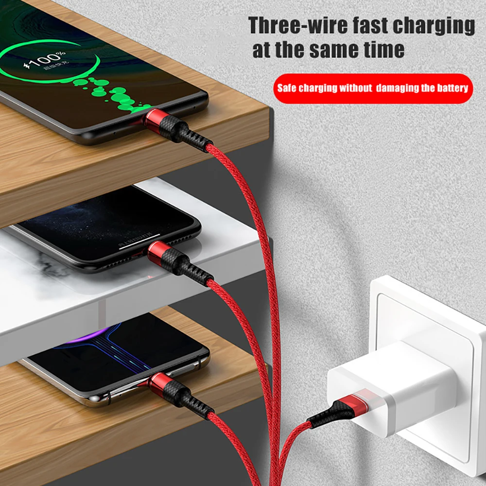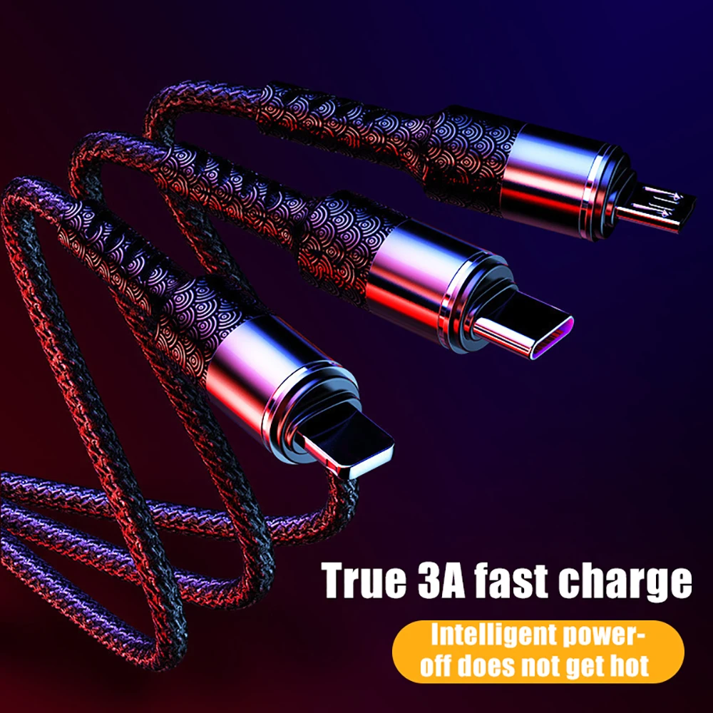Cable USB 3 en 1 Cable tipo C para Samsung S20 Xiaomi Huawei 4 en 1 Cable de carga rápida para iPhone 13 12 11 Cable Micro USB cargador