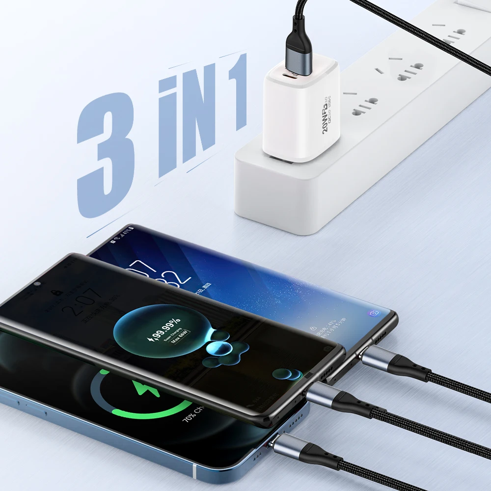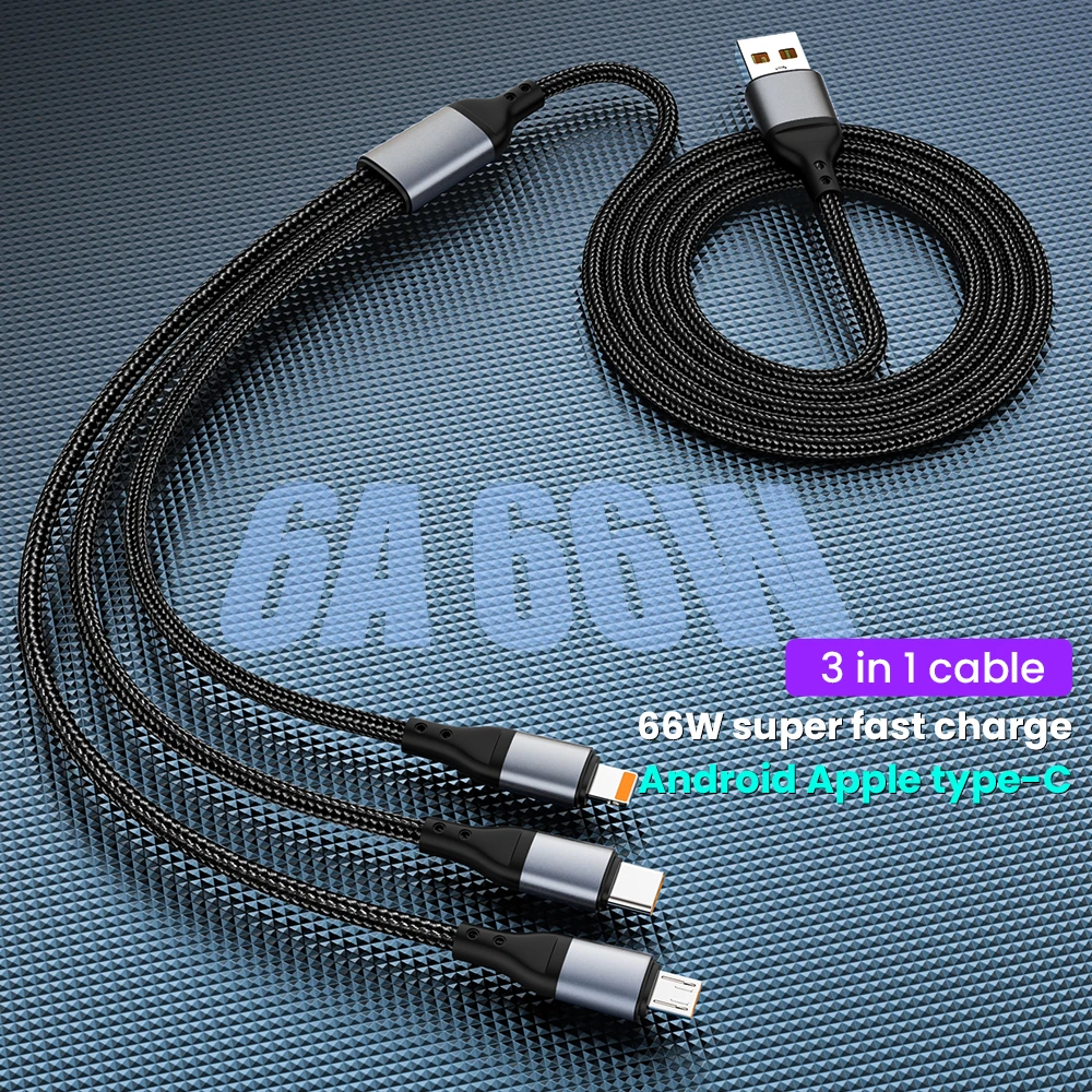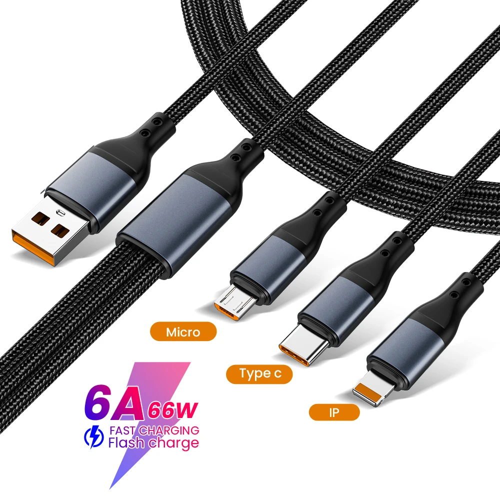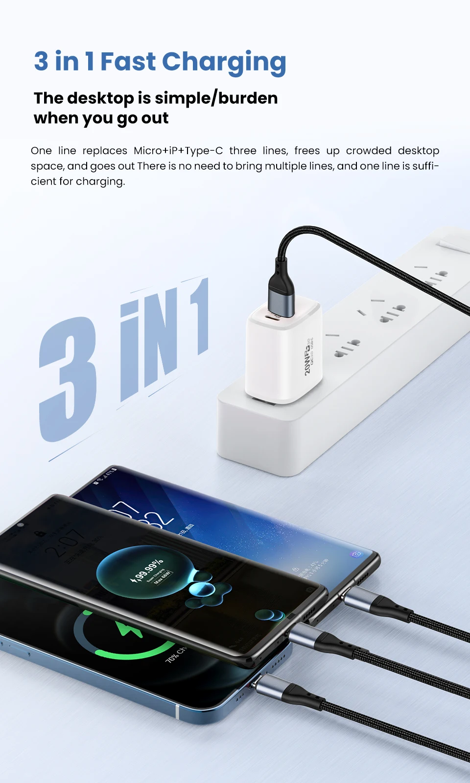 Comprar Cable USB 3 en 1 Tipo C para Samsung, Xiaomi X3, Huawei, iPhone 14, 13, 12, 11, cargador de teléfono, Cable de datos Micro USB