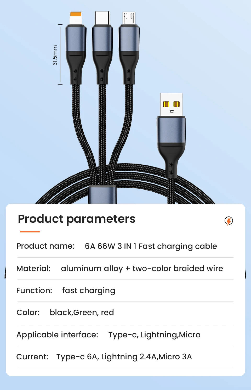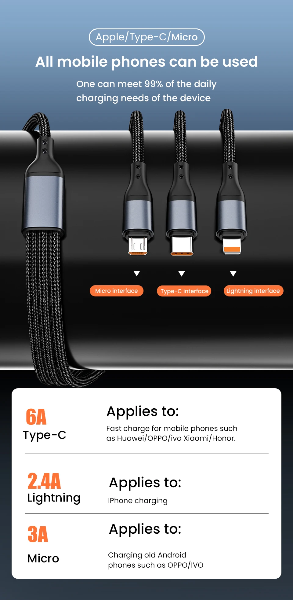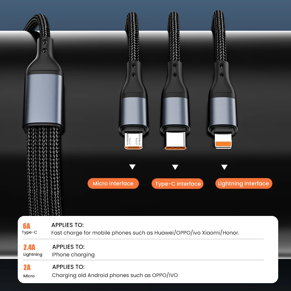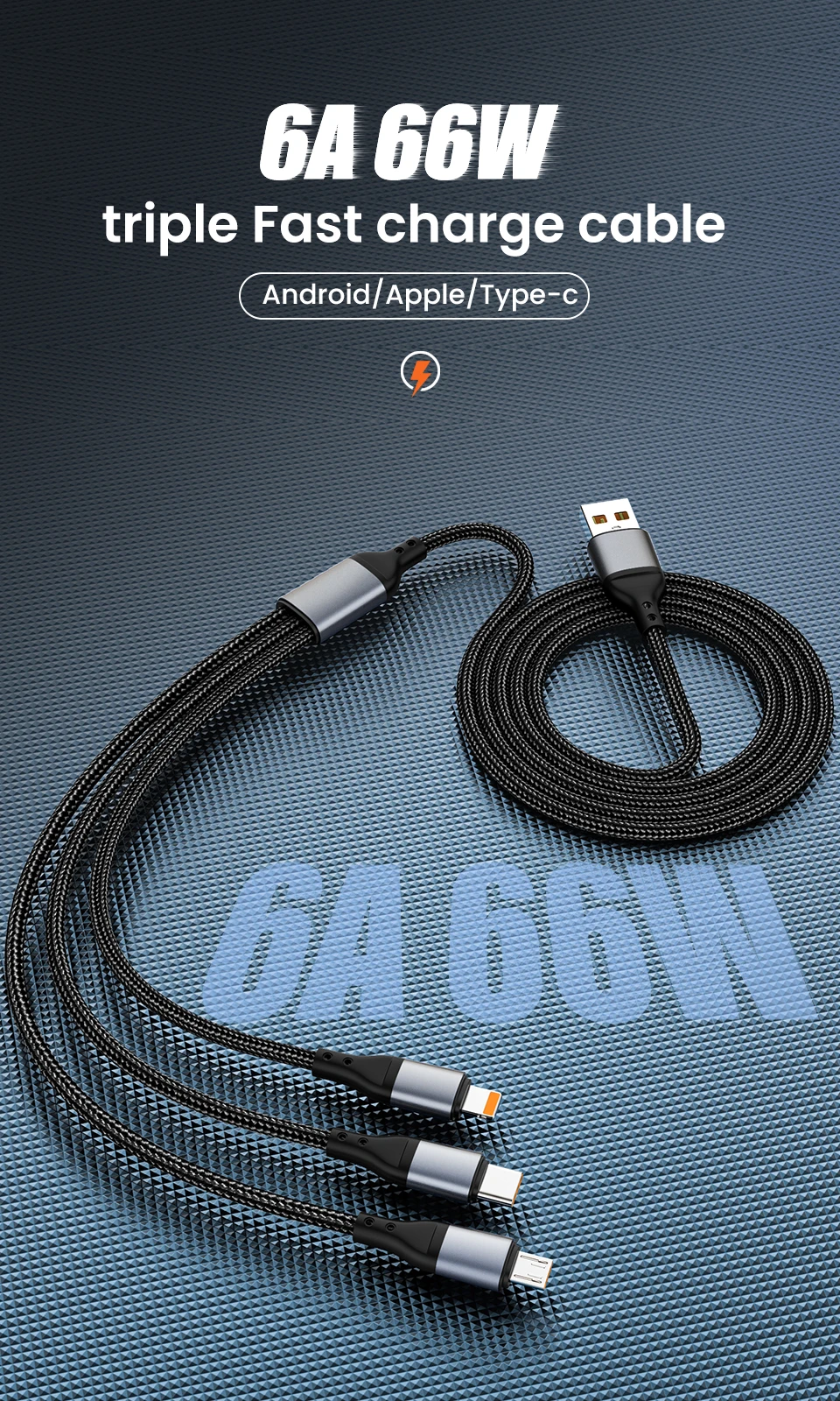 Comprar Cable USB 3 en 1 Tipo C para Samsung, Xiaomi X3, Huawei, iPhone 14, 13, 12, 11, cargador de teléfono, Cable de datos Micro USB