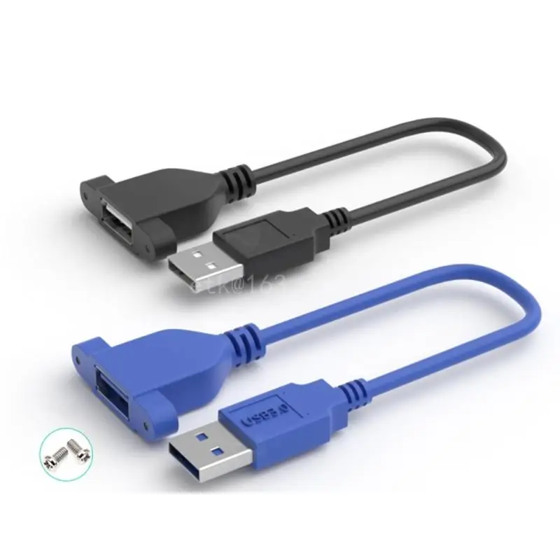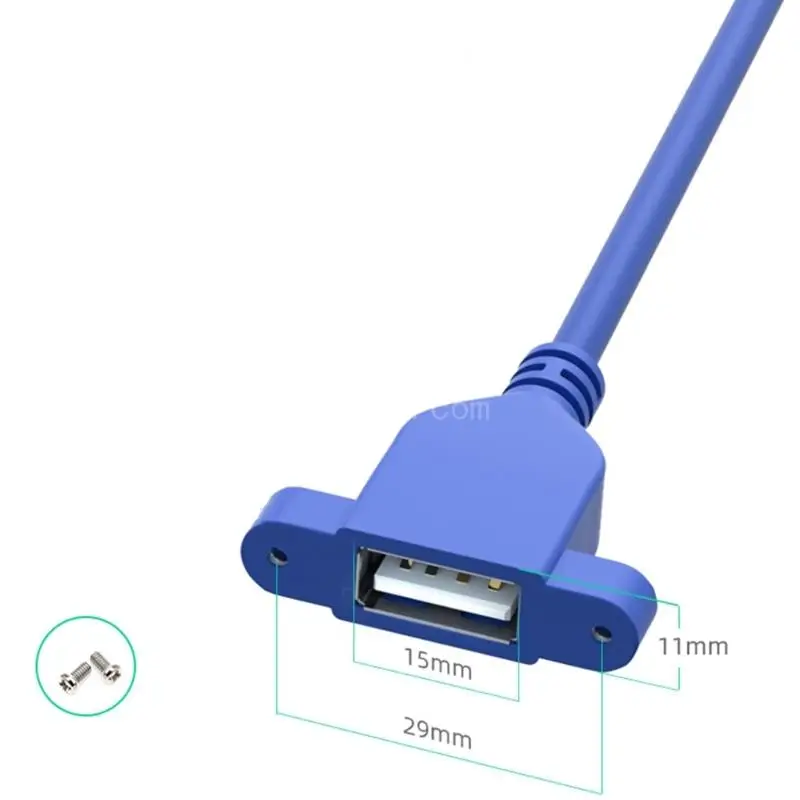Conector USB hembra con dos orificios para tornillos que es conveniente fijar en la carcasa del ordenador u otro lugar adecuado, dos tornillos incluidos.