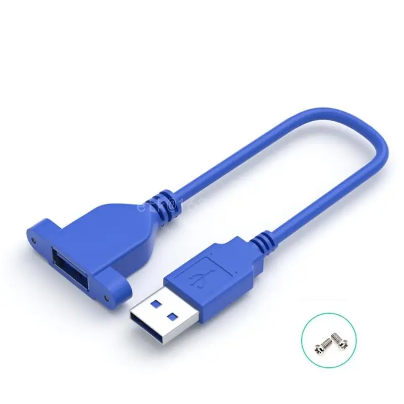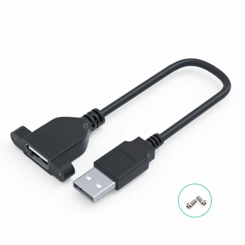 Conector USB hembra con dos orificios para tornillos que es conveniente fijar en la carcasa del ordenador u otro lugar adecuado, dos tornillos incluidos.