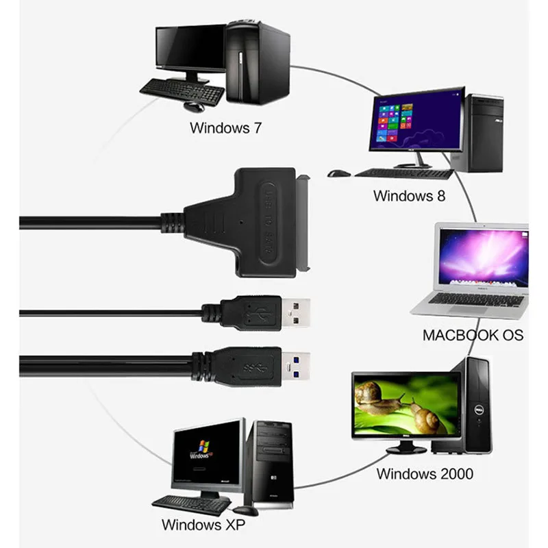 Comprar Cable USB 3,0 2,0 SATA 3, adaptador Sata a USB de hasta 6 Gbps, disco duro HDD de 7 + 15 pines para Win 98/ME/2000/XP/VISTA /win7/8/MAC OS