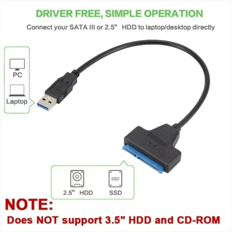 Comprar Cable USB 3,0 2,0 SATA, adaptador Sata a USB 3,0 de hasta 6 Gbps, compatible con disco duro SSD externo de 2,5 pulgadas, Cable Sata III de 22 pines