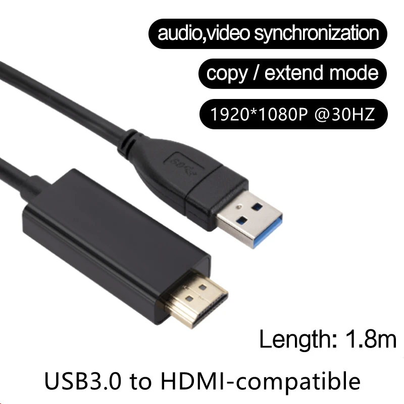 Comprar Cable USB 3,0 a HDMI Compatible, convertidor HD 3,0 para Lenovo, ASUS, adaptador de ordenador portátil, 1,8 m, 1080P, Cable de Monitor de vídeo para proyector