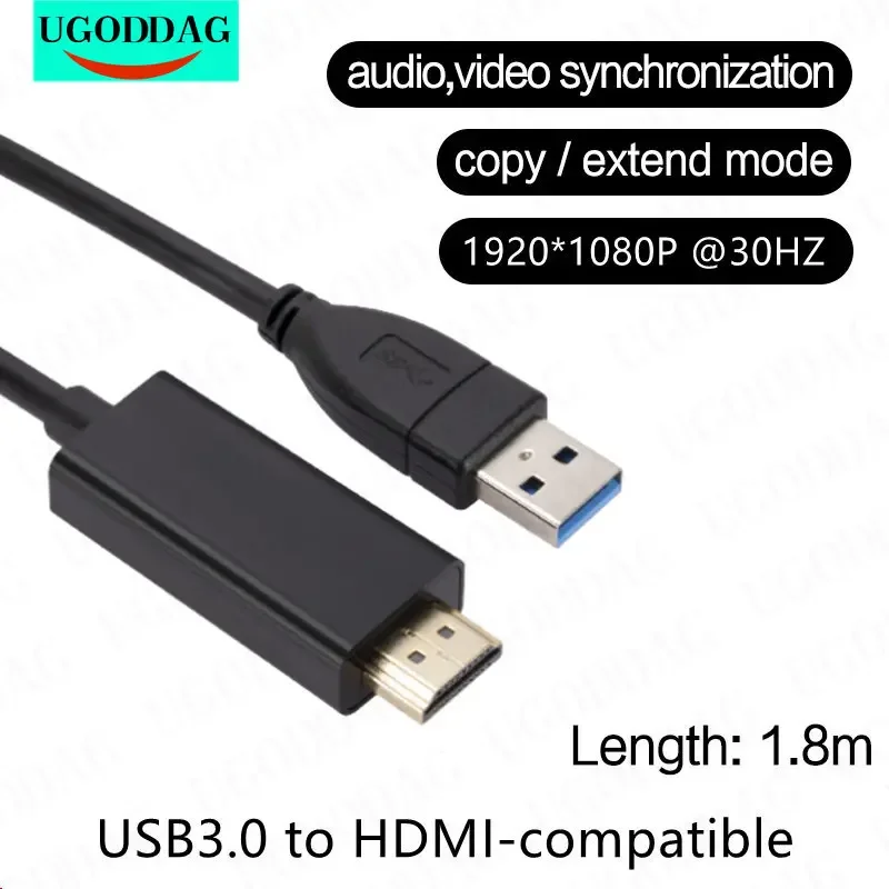 Cable USB 3,0 a HDMI, convertidor USB 3,0 HD para Lenovo ASUS, adaptador de PC portátil, 1,8 m, 1080P, Cable de Monitor de vídeo para proyector1. Descripción: