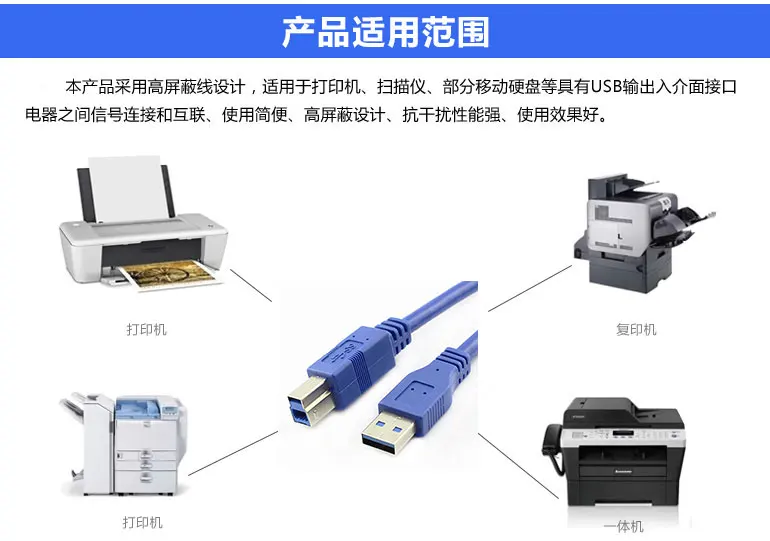 Características1. Supervelocidad Gbps de hasta 5, 10 veces más rápida que la versión USB 2,02, Compatible con USB 1,0, 1,1, 2,0 y 3,03, admite plug and play, admite conexión en caliente4. Admite transmisión de datos bidireccional al mismo tiempo5. Moldeado de PVC para garantizar una vida útil de datos sin erroresTransmisiones.6. El doble blindaje puede reducir en gran medida el electromagnético y la radioInterferencia y garantizar una transmisión de datos fiable.7, le permite ampliar la distancia entre sus dispositivos USB ySu concentrador USB u ordenador.8, adecuado para conectar ordenadores personales con impresoras,Escáneres, ratón, teclado, disco duro externo, cámara digital, webCámara, HUB y otros periféricos USB.