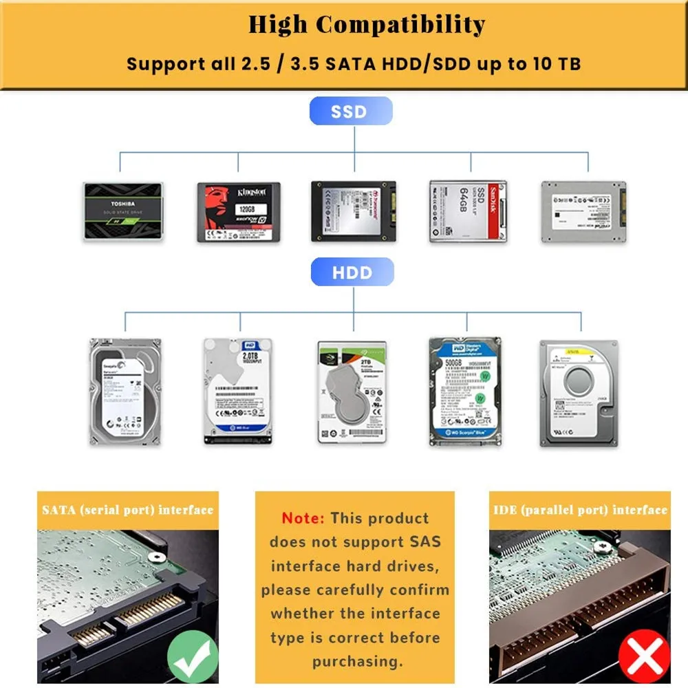Este adaptador de disco duro se puede usar para discos duros 2,5/3,5, la calidad es buena, no necesita preocuparse por el problema de "no funciona", "sin reconocimiento".