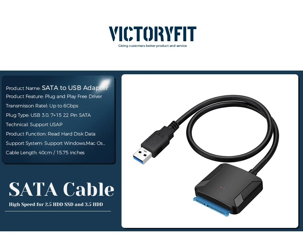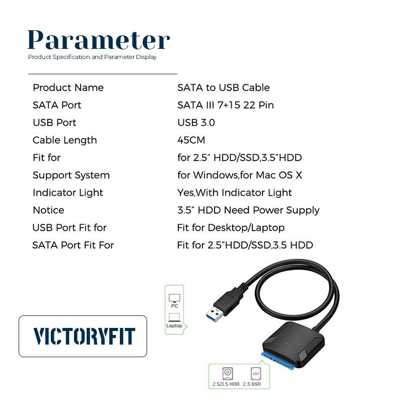 El convertidor de disco duro USB 3.0 a SATA le permite conectar cualquier controlador duro SATA estándar de 2,5 pulgadas y 3,5 pulgadas a su computadora a través del puerto USB 3.0 a una velocidad de hasta 5 Gbps.