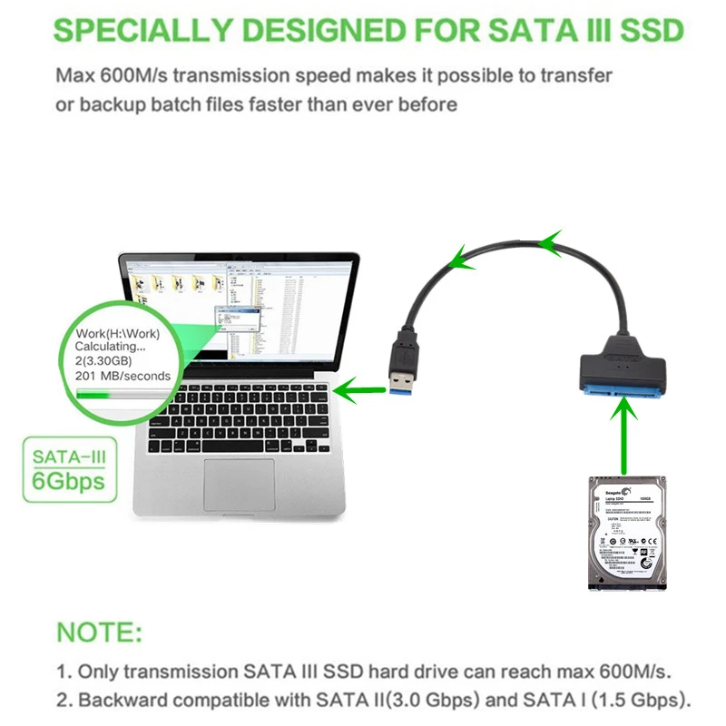 Comprar Cable USB 3,0 SATA Sata a USB 3,0, adaptador de hasta 6 Gbps, compatible con disco duro externo HDD SSD de 2,5 pulgadas, Cable Sata III de 22 pines