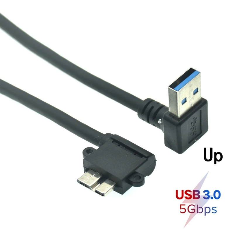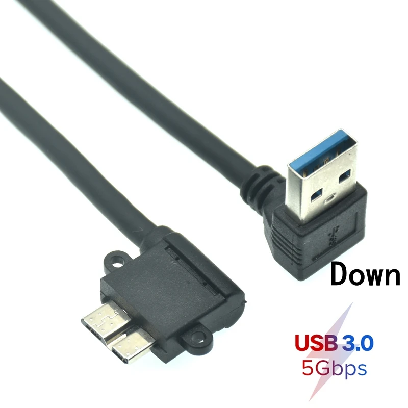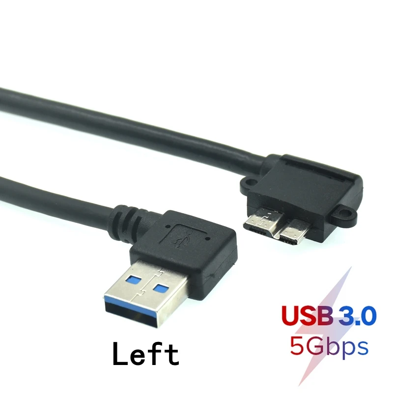 -Este cable USB 3.0 macho en ángulo recto de 90 grados a macho micro B es el último producto. La velocidad de transmisión alcanza
