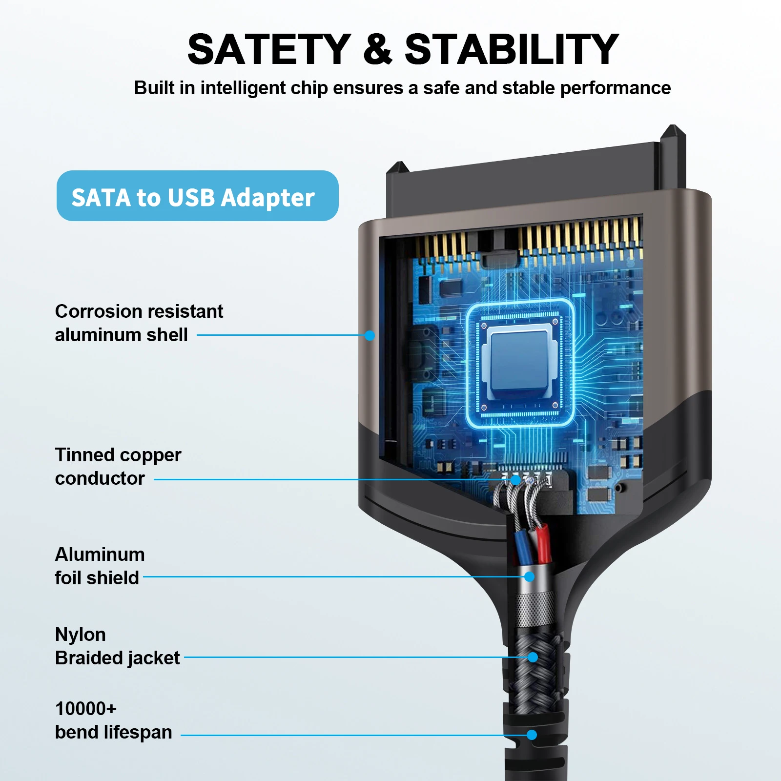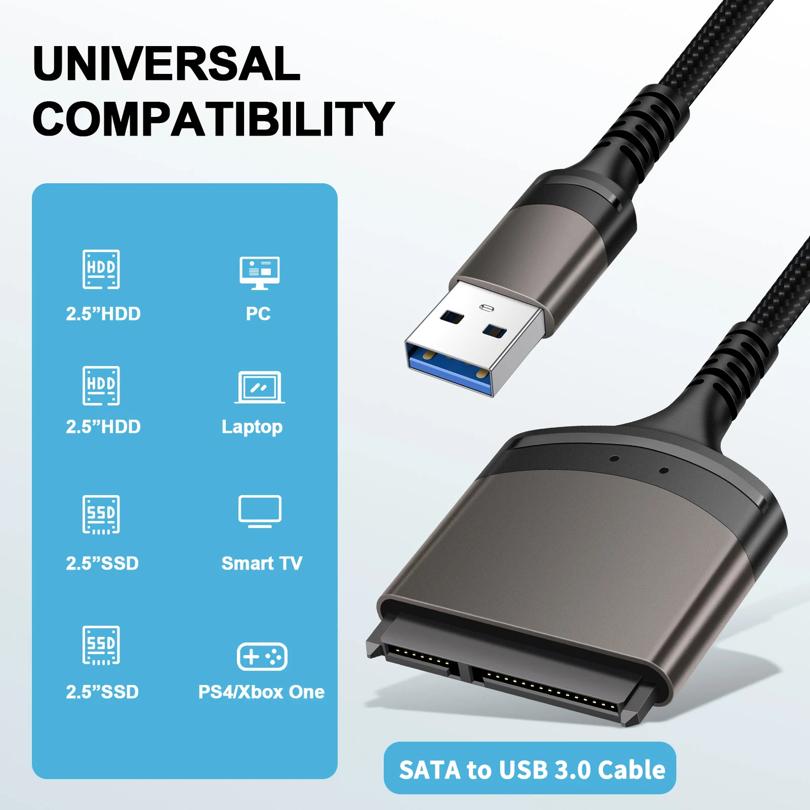 Cable USB 3,0/tipo C a SATA 7 + 15 de 22 Pines, adaptador de disco duro externo HDD SSD para Windows 7/8/10 compatible con transmisión de datos de 6Gbps