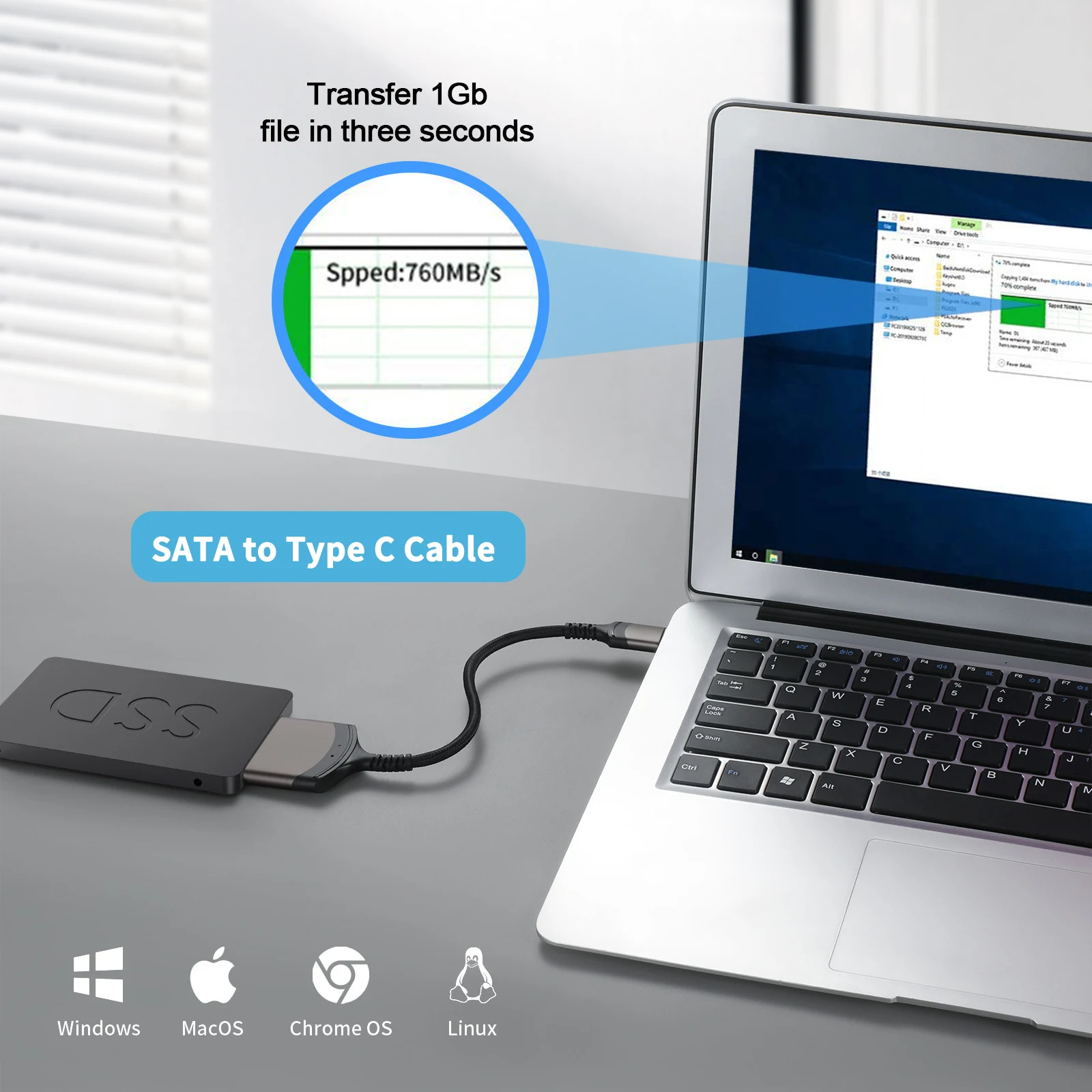 Cable USB 3,0 tipo C a SATA 7 + 15 de 22 Pines, adaptador de disco duro externo HDD SSD para Windows 7/8/10, compatible con transmisión de datos de 6Gbps