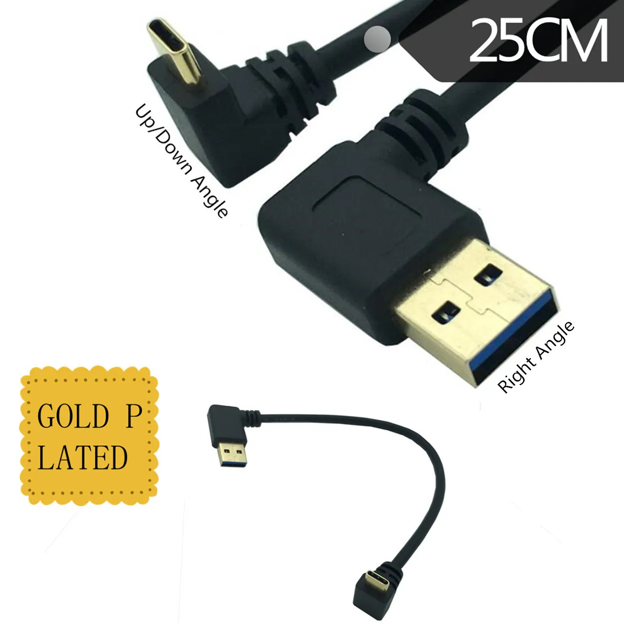 Versión USB3.0 chapada en oro AM giro a la derecha/tipo C arriba y abajo ordenador portátil cable de carga de datos de teléfono móvil 0,25 m