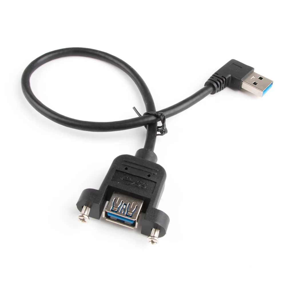 Cable USB 3.0 USB3.0 A macho a hembra Jack Montaje en panel con tornillos a un macho Cable de extensión en ángulo recto Color negro opcional 50 cm