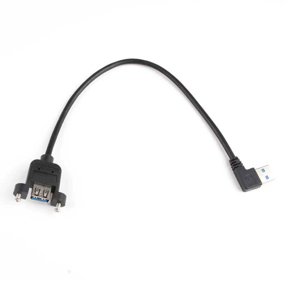 Cable de extensión USB3.0 macho a hembra en ángulo recto con orificio para tornillo para fijar el cable de montaje en panel