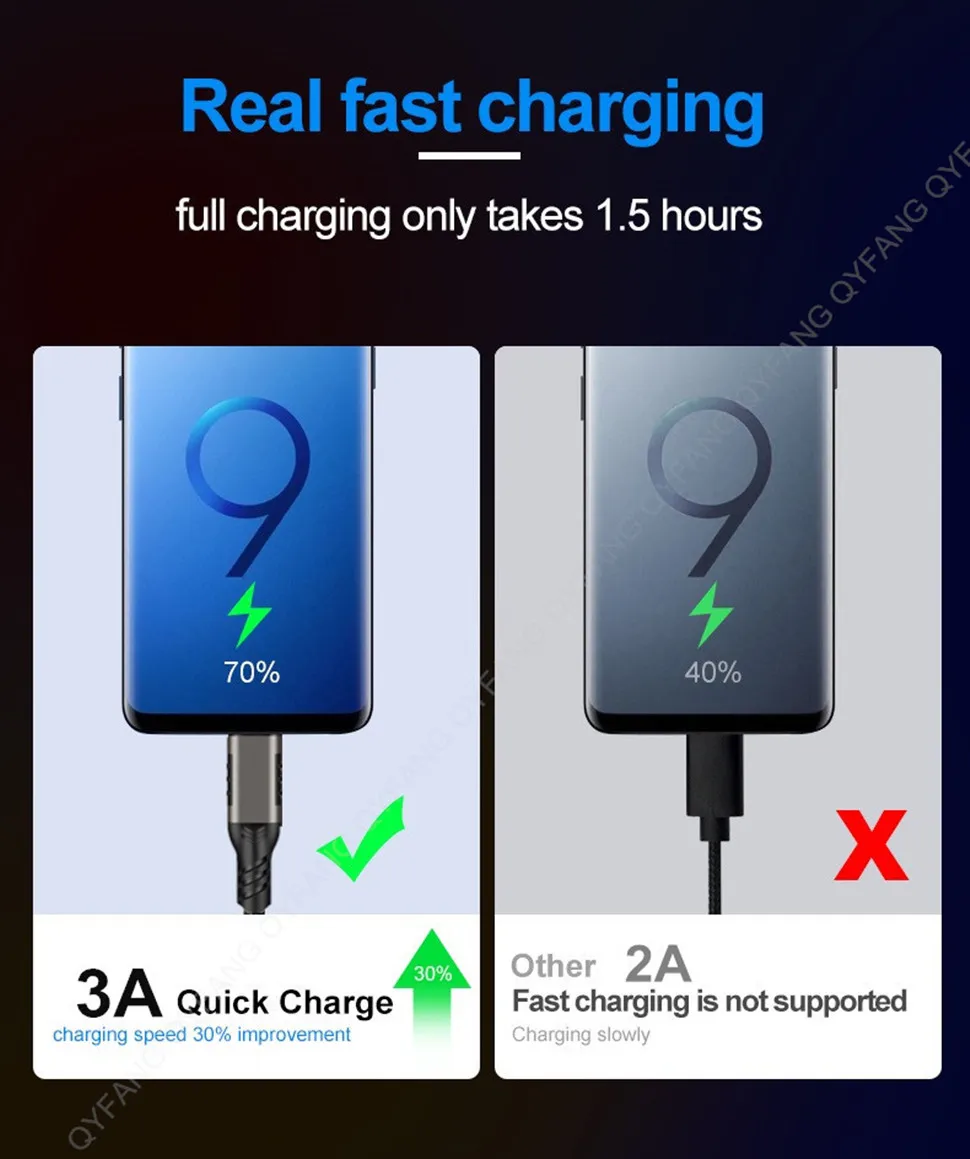 (2) Carga rápida de 60 W: salida de hasta 3 A/20 V, cargue su teléfono hasta 60 W con un cargador USB-A.La resistencia incorporada de 56 kΩ garantiza una carga segura y protege su dispositivo contra daños.Compatible con Qualcomm Quick Charge 3.0, admite potencia de salida de hasta 3 amperios
