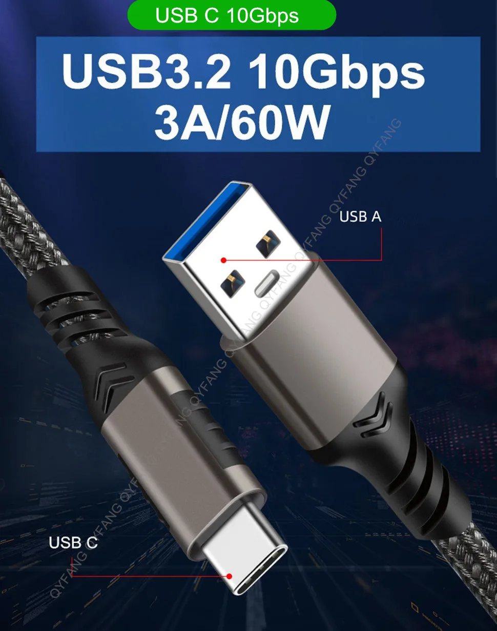 Comprar Cable USB 3,1 Gen2 de 10gbps, Cable USB A USB C, 3A, 60W, QC3.0, carga rápida para Samsung NVMe, disco duro externo, Cable automático Android Data